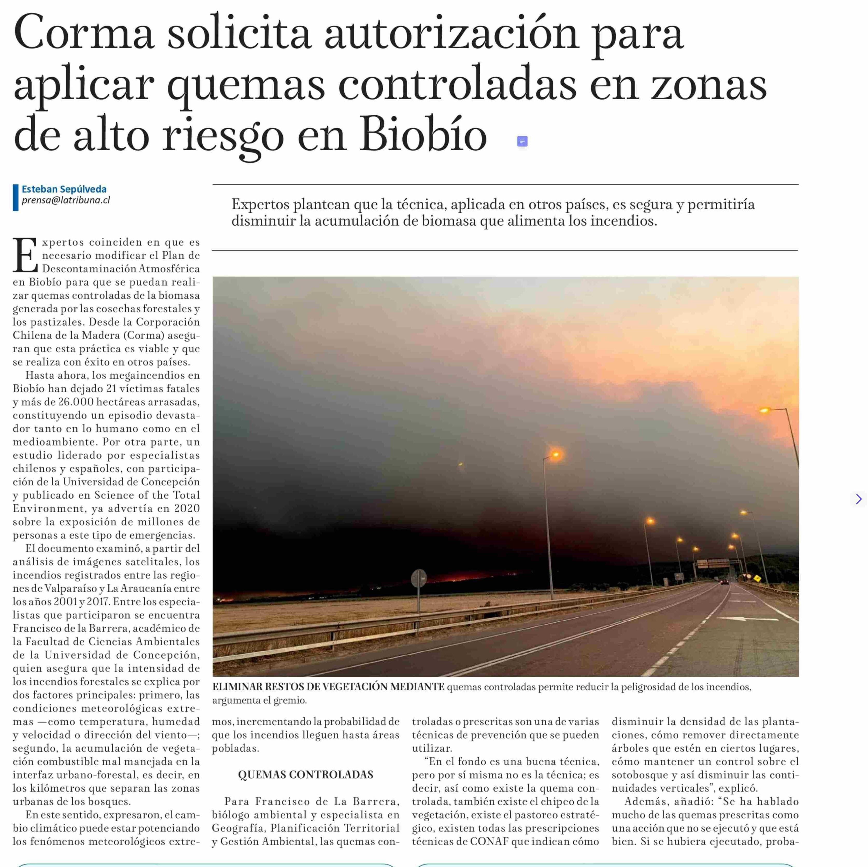 Título: Corma solicita autorización para aplicar quemas controladas en zonas de alto riesgo en Biobío