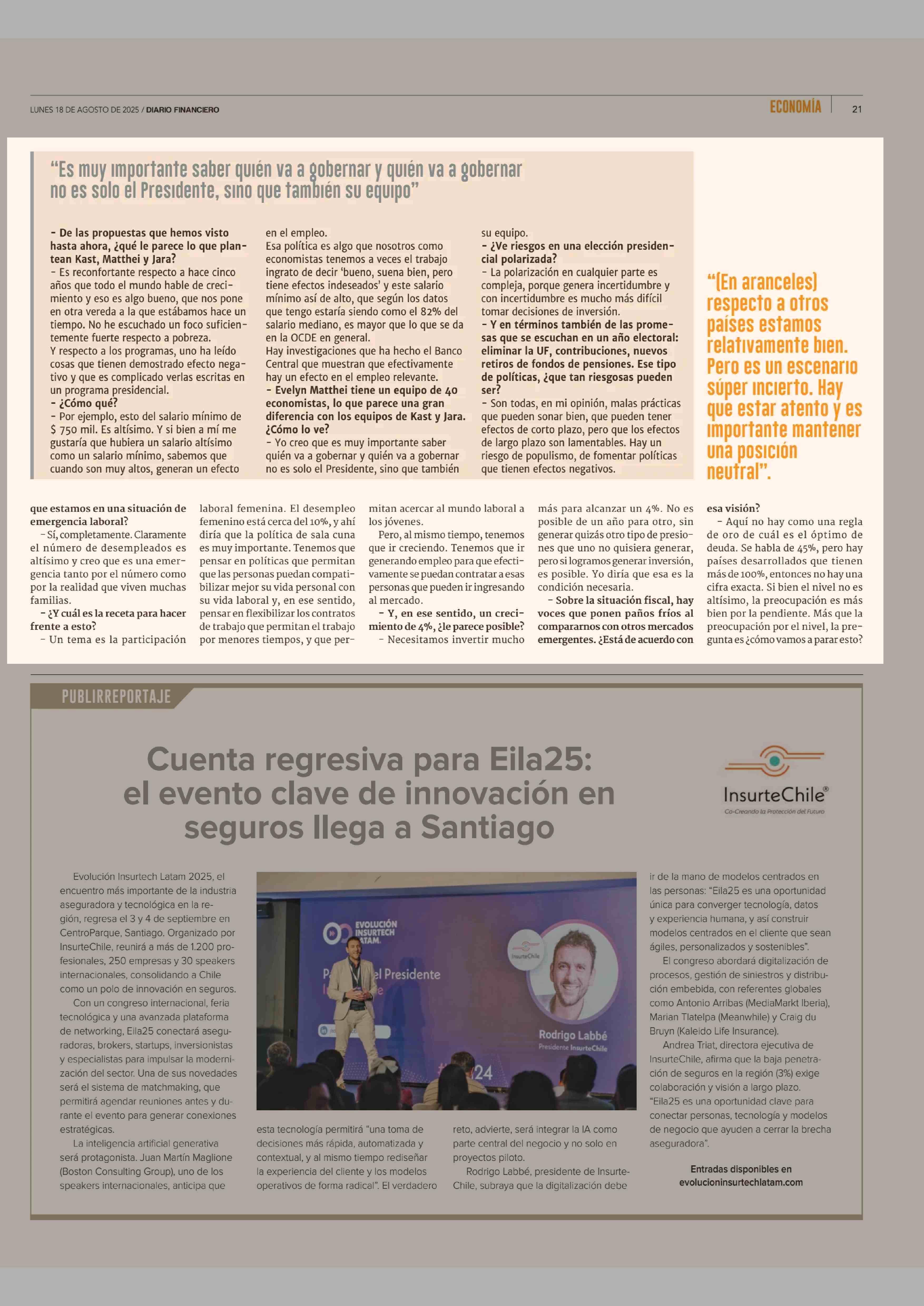 "Necesitamos invertir mucho más para alcanzar un (crecimiento de) 4%'" 18-08-2025 Diario Financiero |