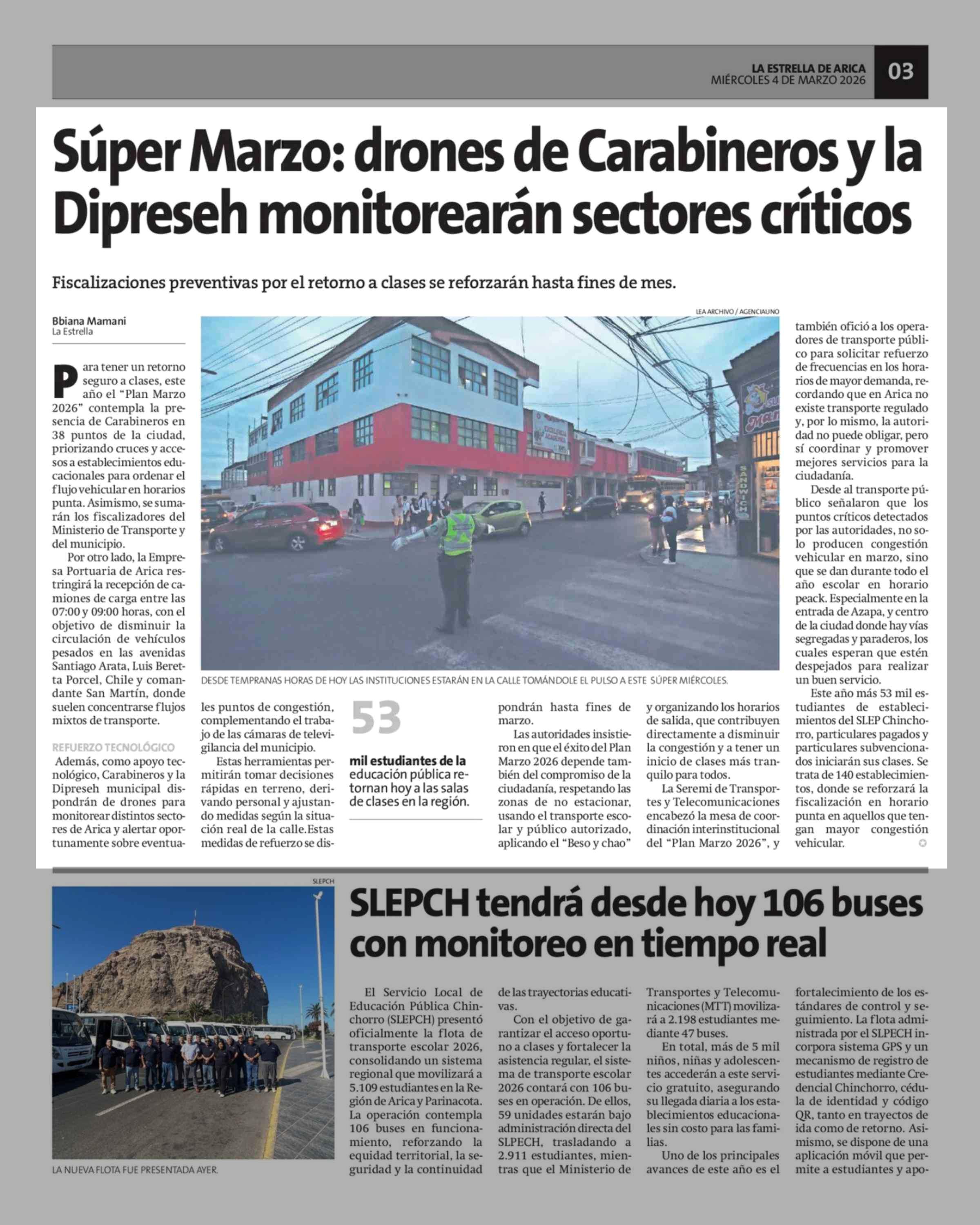 Súper Marzo: drones de Carabineros y la Dipreseh monitorearán sectores críticos 04-03-2026 La Estrella de Arica |
