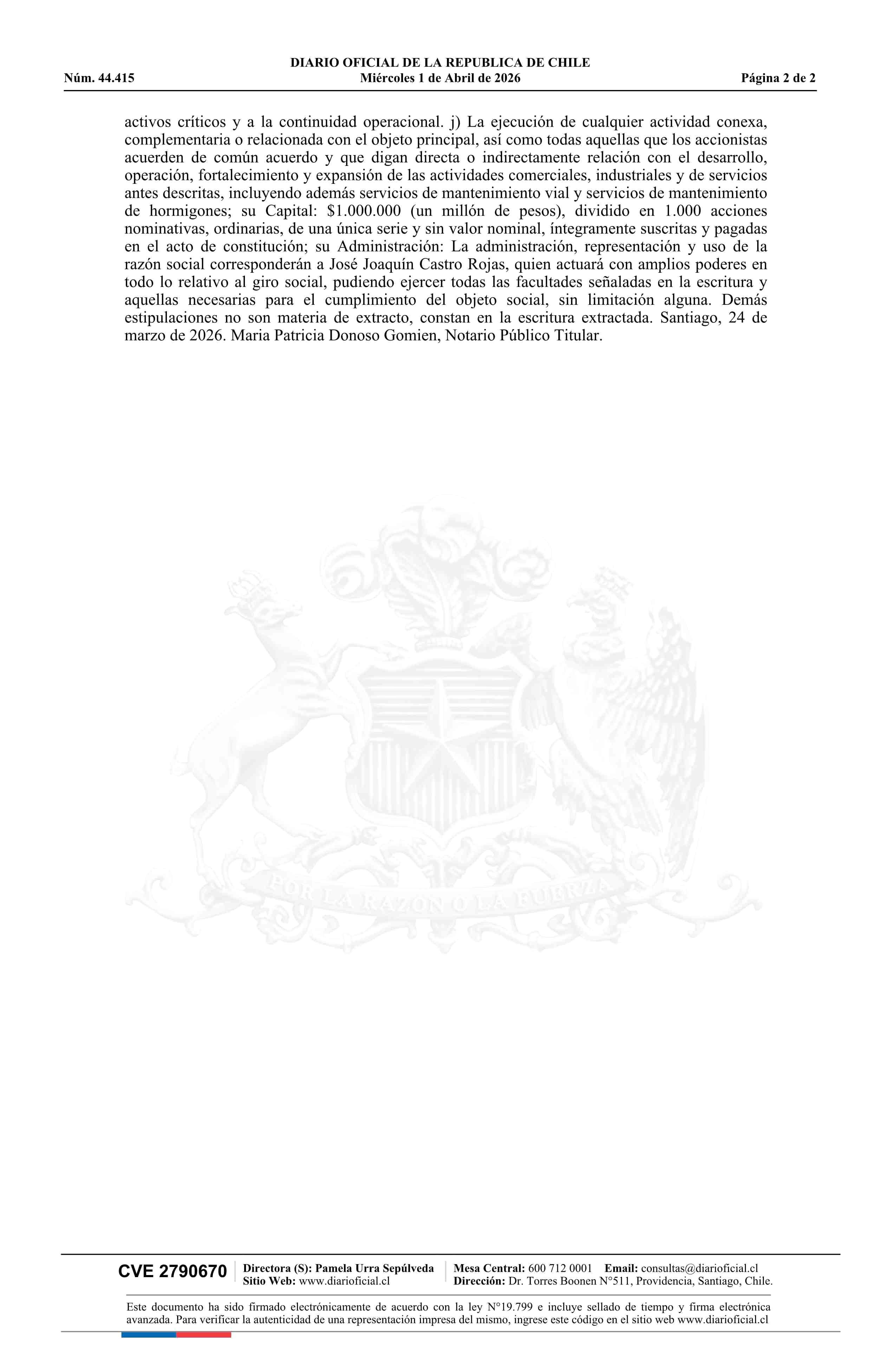 Rio Manso SpA 01-04-2026 Diario Oficial Edición Electrónica |