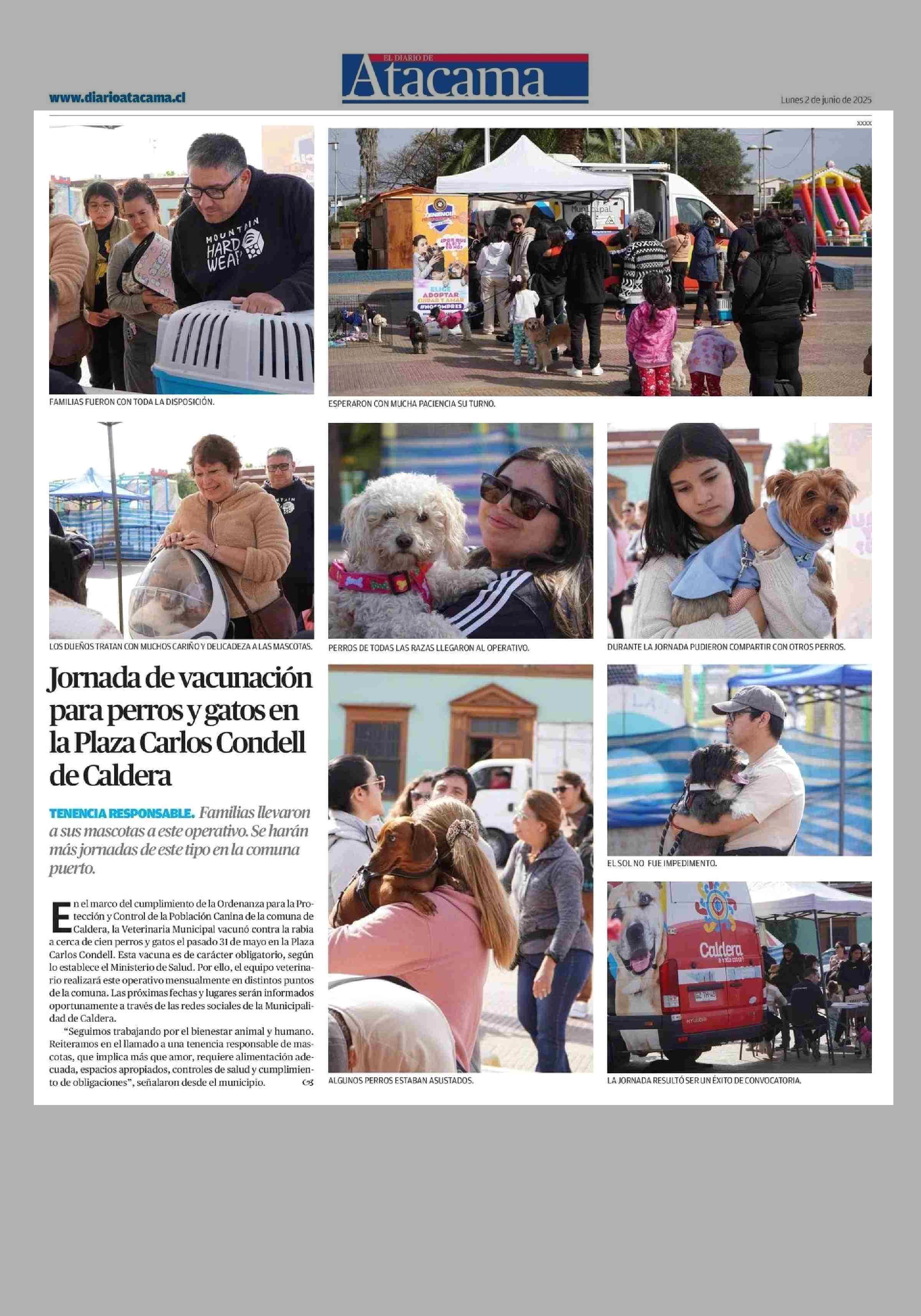 Jornada de vacunación para perros y gatos en la Plaza Carlos Condell de Caldera 02-06-2025 El Diario de Atacama |
