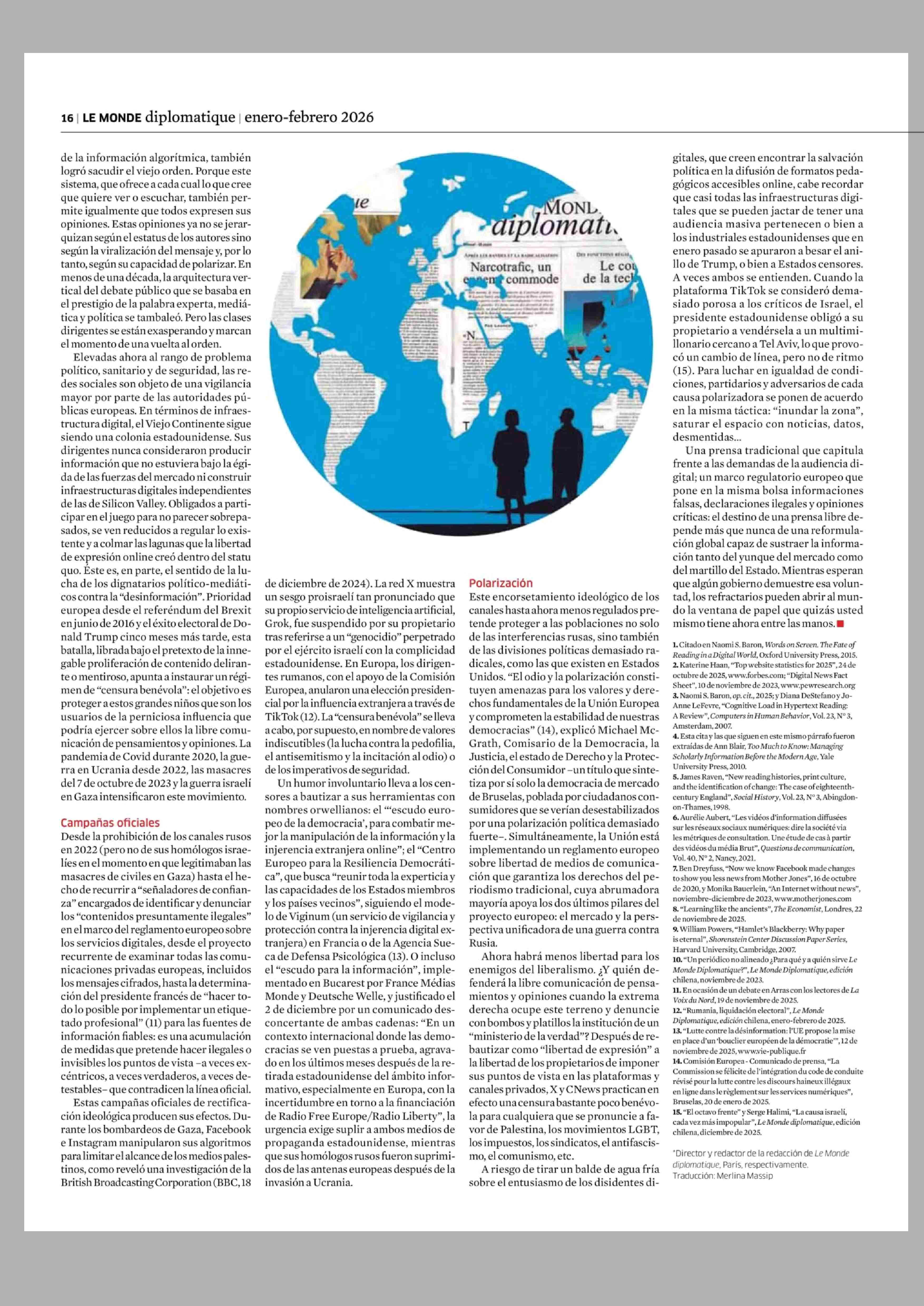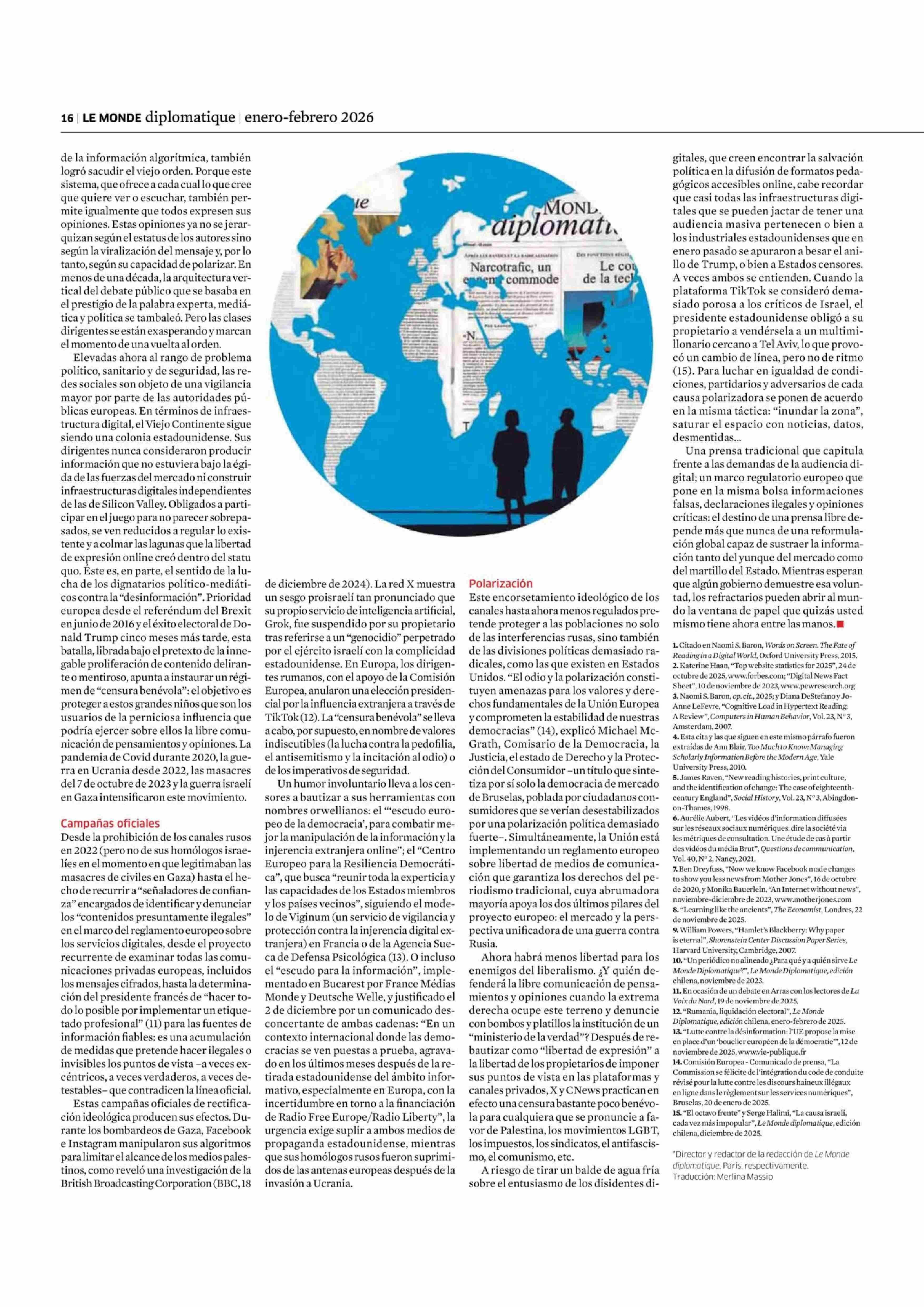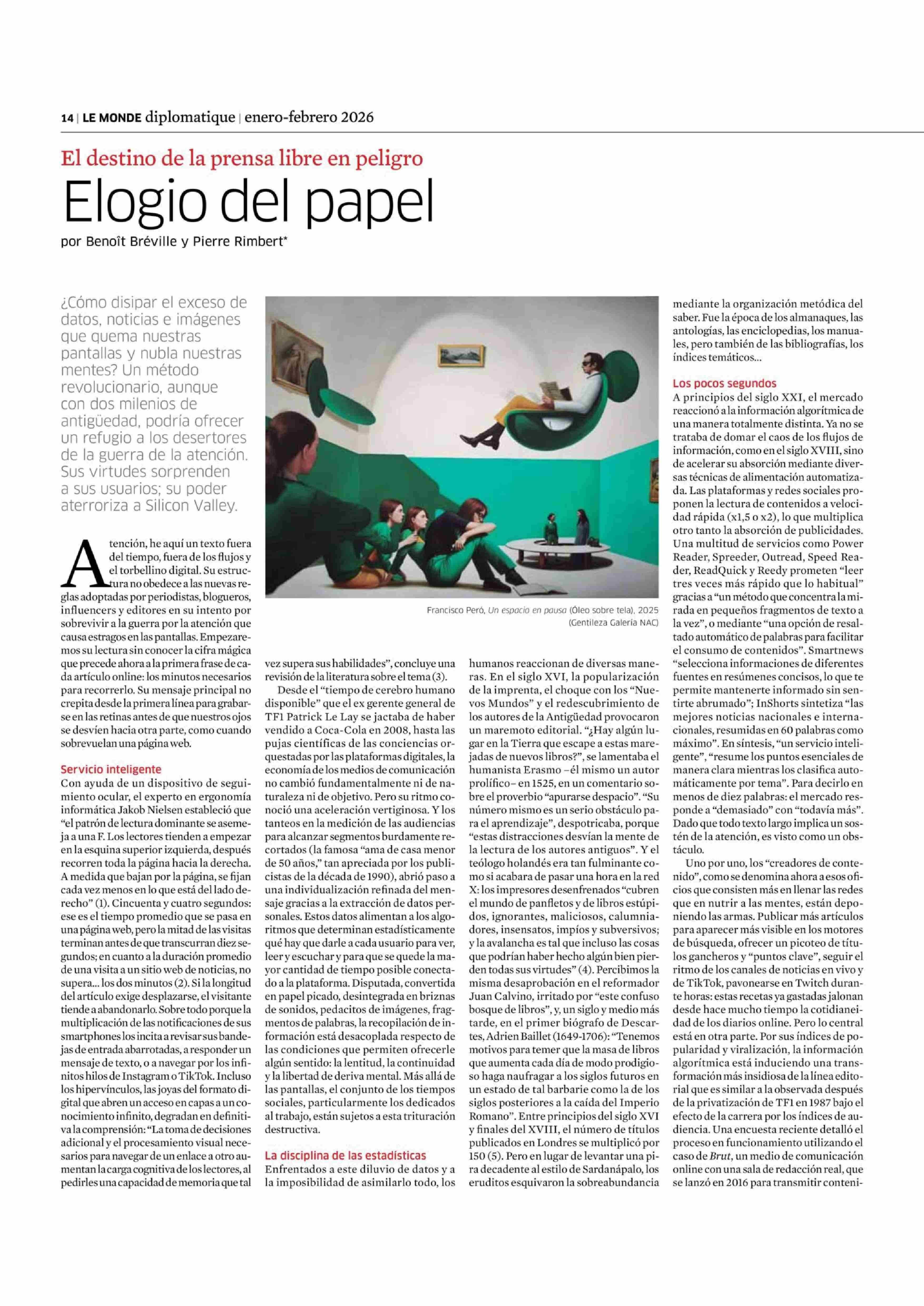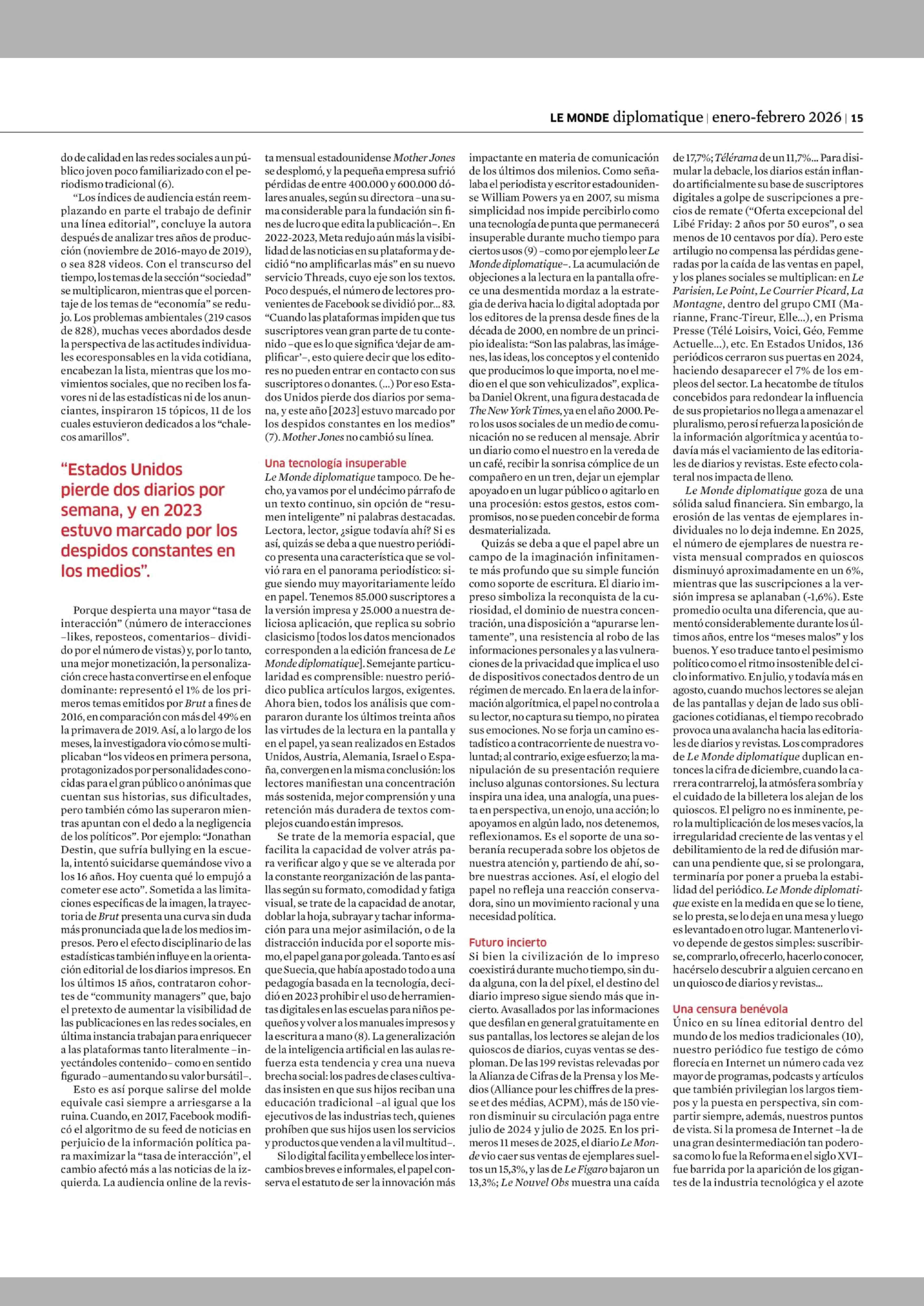 COLUMNAS DE OPINIÓN: Elogio del papel 12-01-2026 Le Monde Diplomatique |