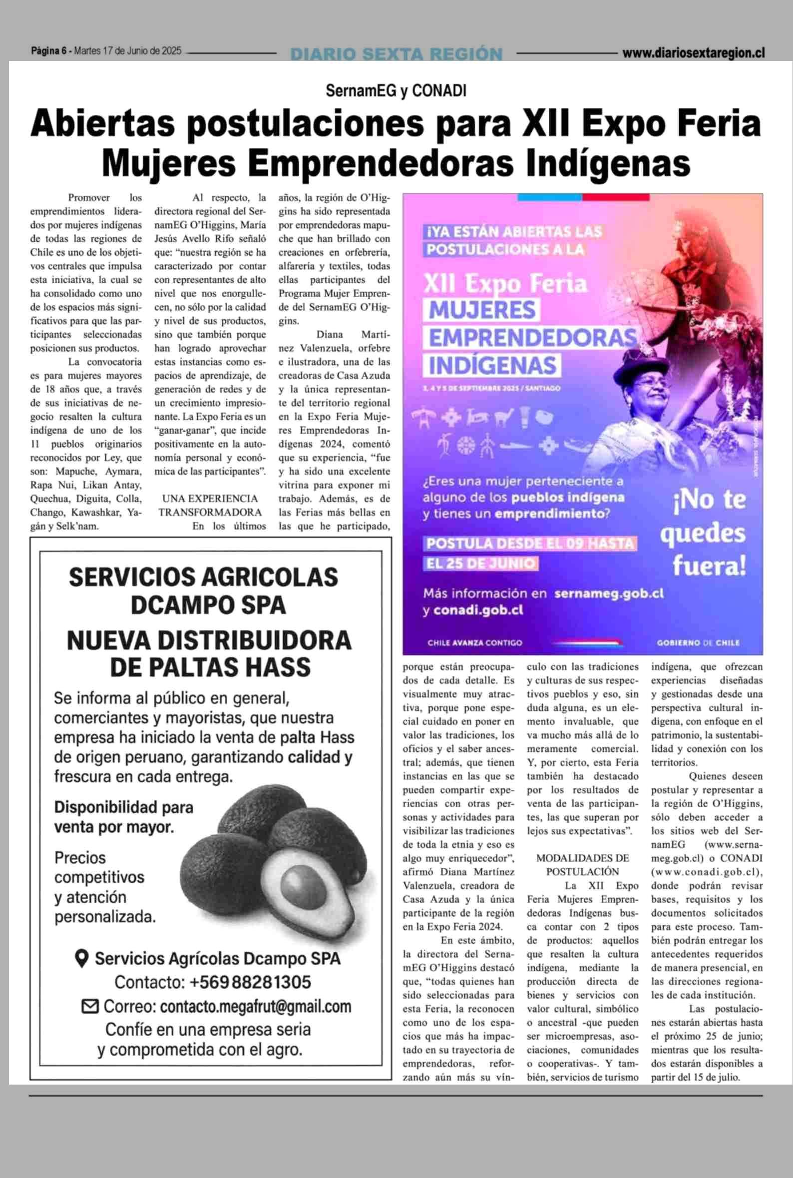 Fuente: Diario VI Región (Diario VI Región) Página(s): 6