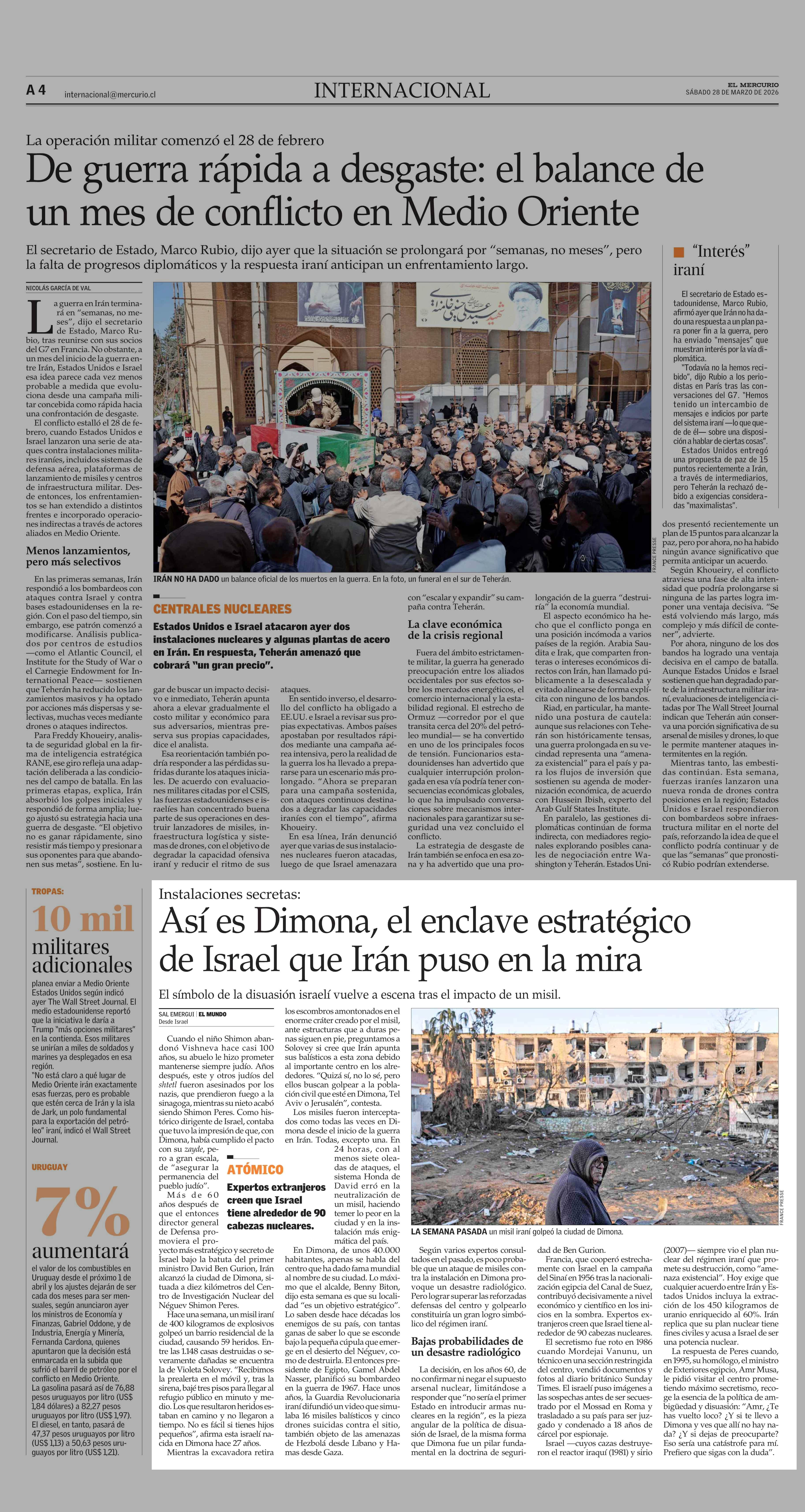 Así es Dimona, el enclave estratégico de Israel que Irán puso en la mira 28-03-2026 El Mercurio |