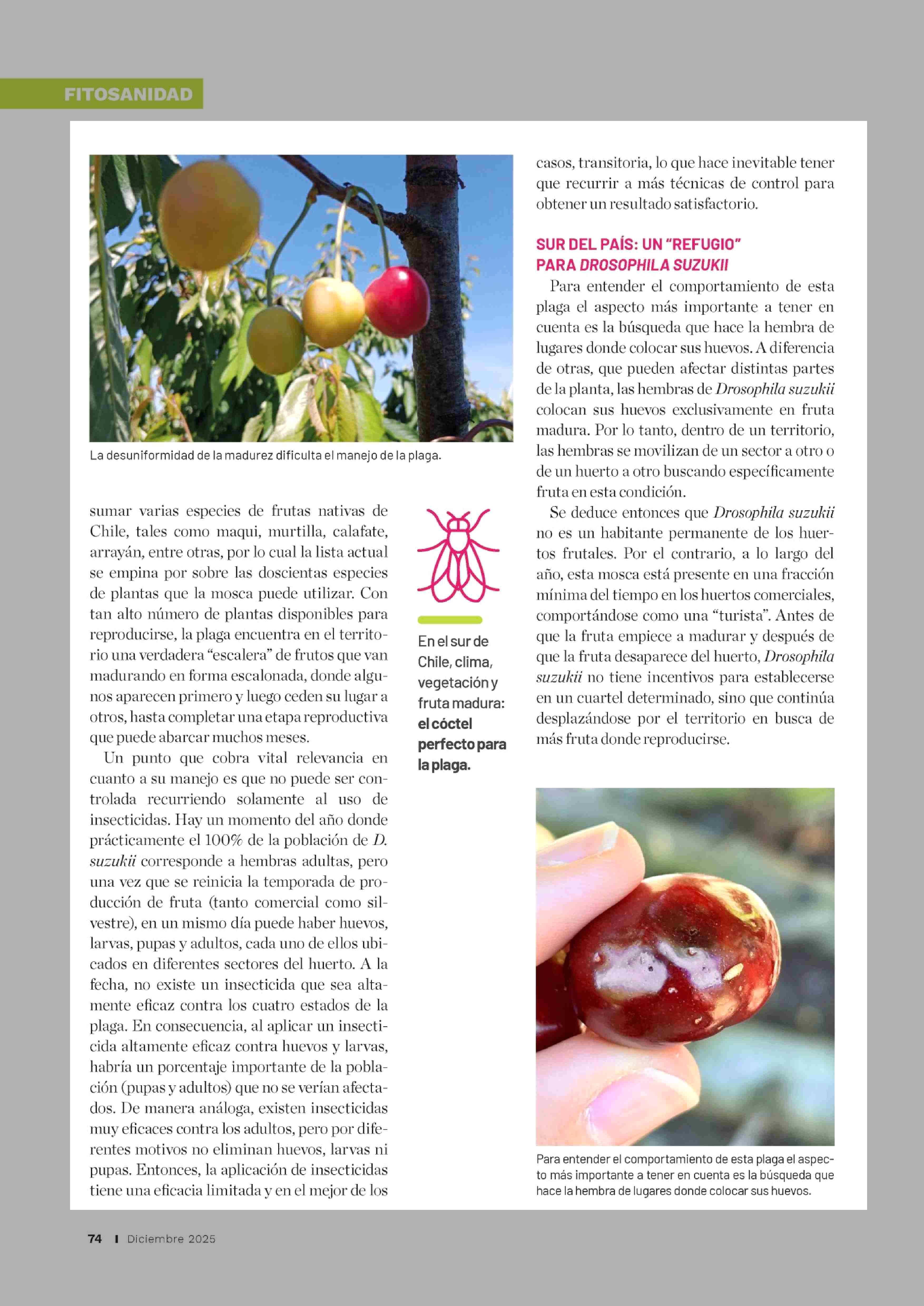 La presión de Drosophila suzukio en las cerezas del sur 20-01-2026 Revista Mundo Agro |