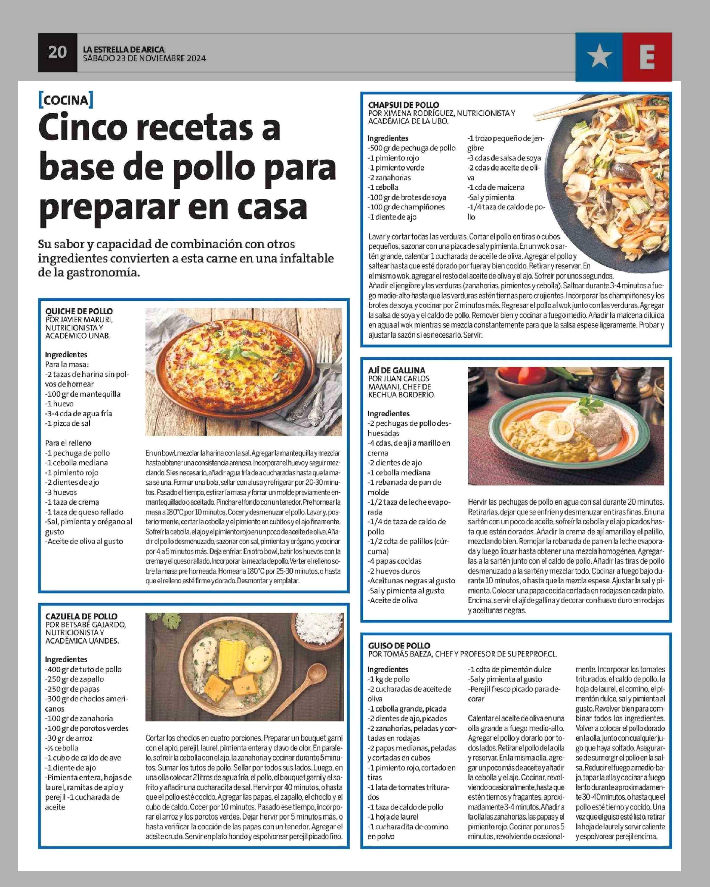 Cinco recetas a base de pollo para preparar en casa 23-11-2024 La Estrella de Arica |
