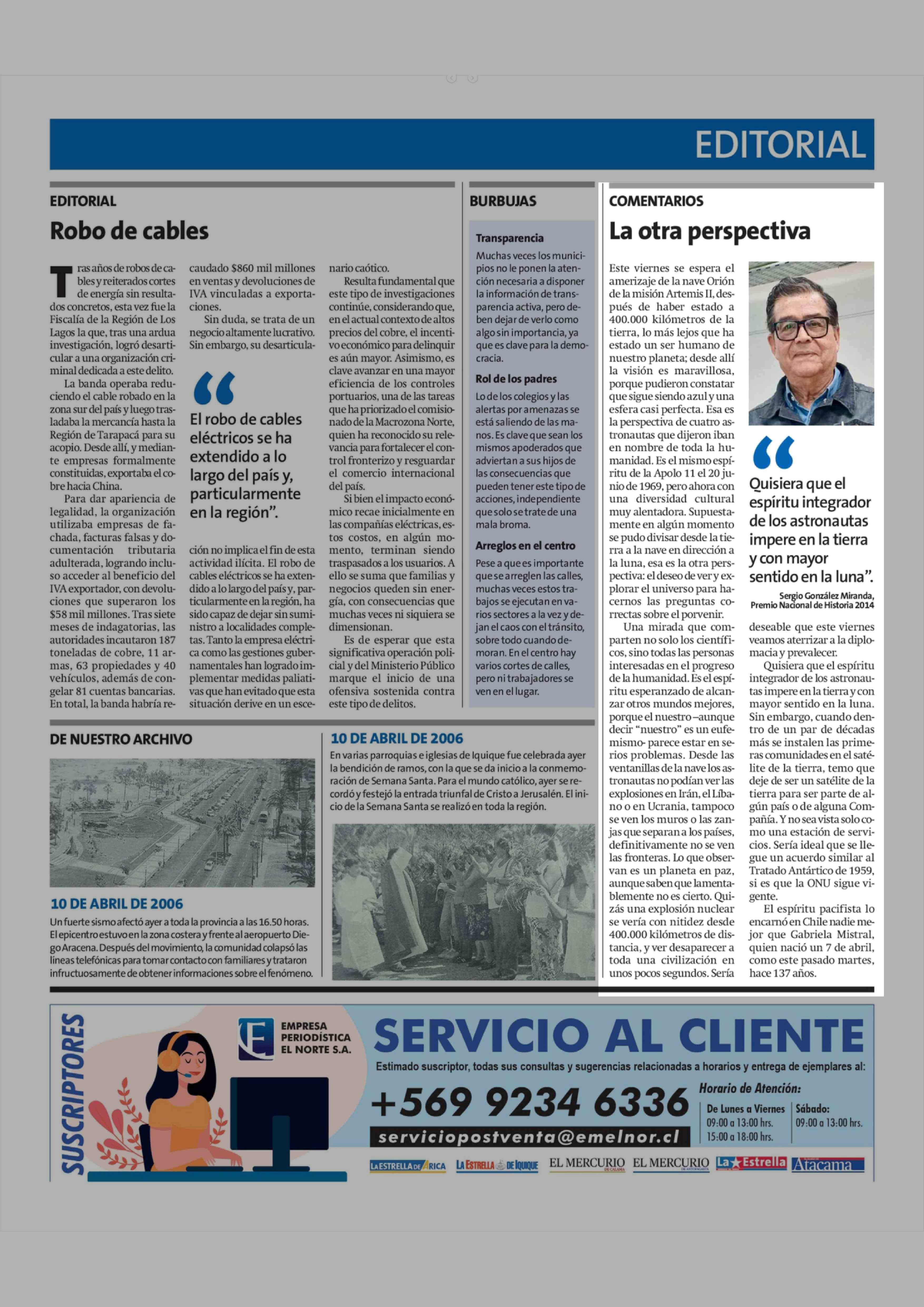 Fecha: 10-04-2026 Sector: Columnas de Opinión Región: Región de Tarapacá