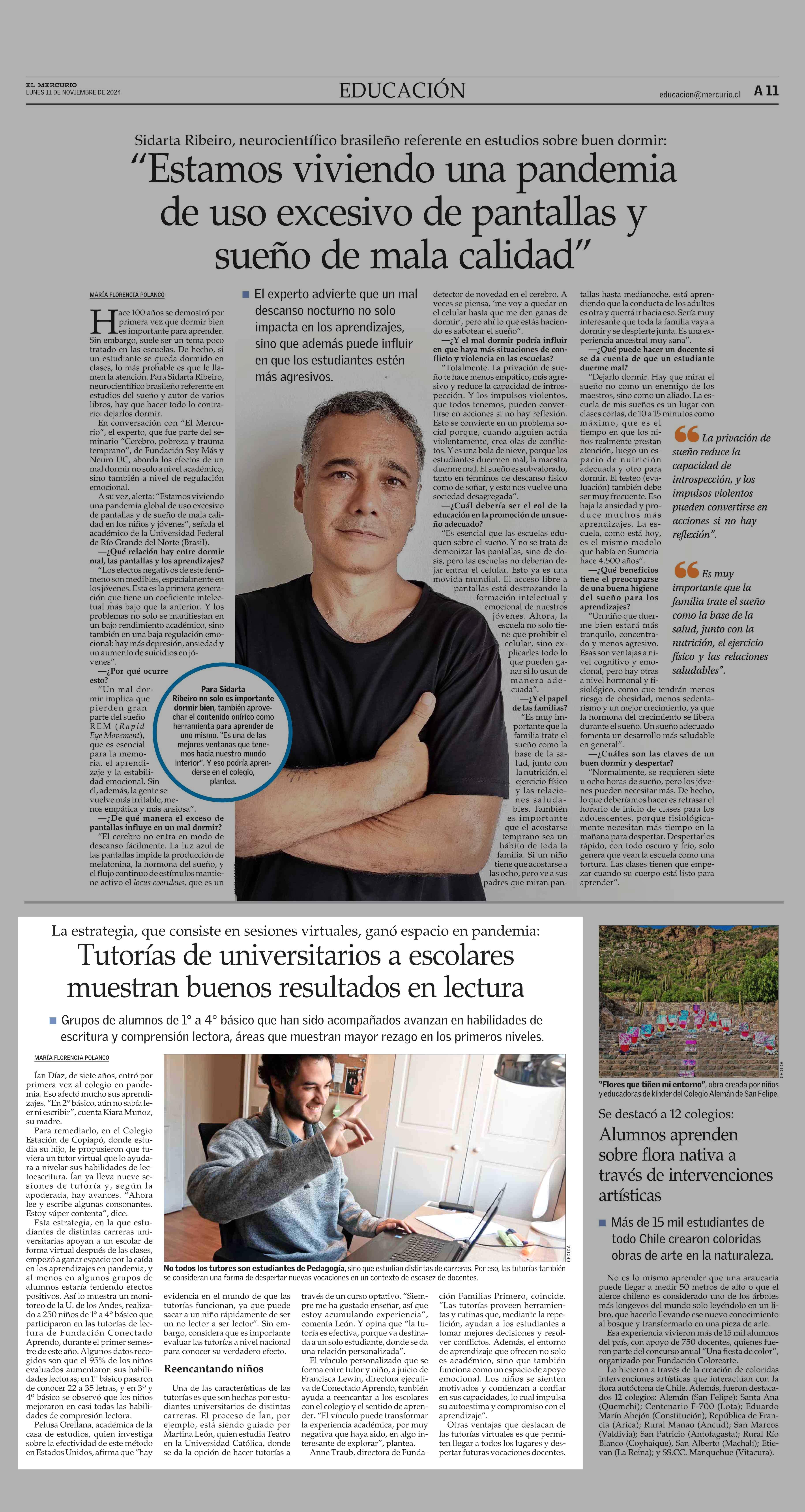 Tutorías de universitarios a escolares muestran buenos resultados en lectura 11-11-2024 El Mercurio |
