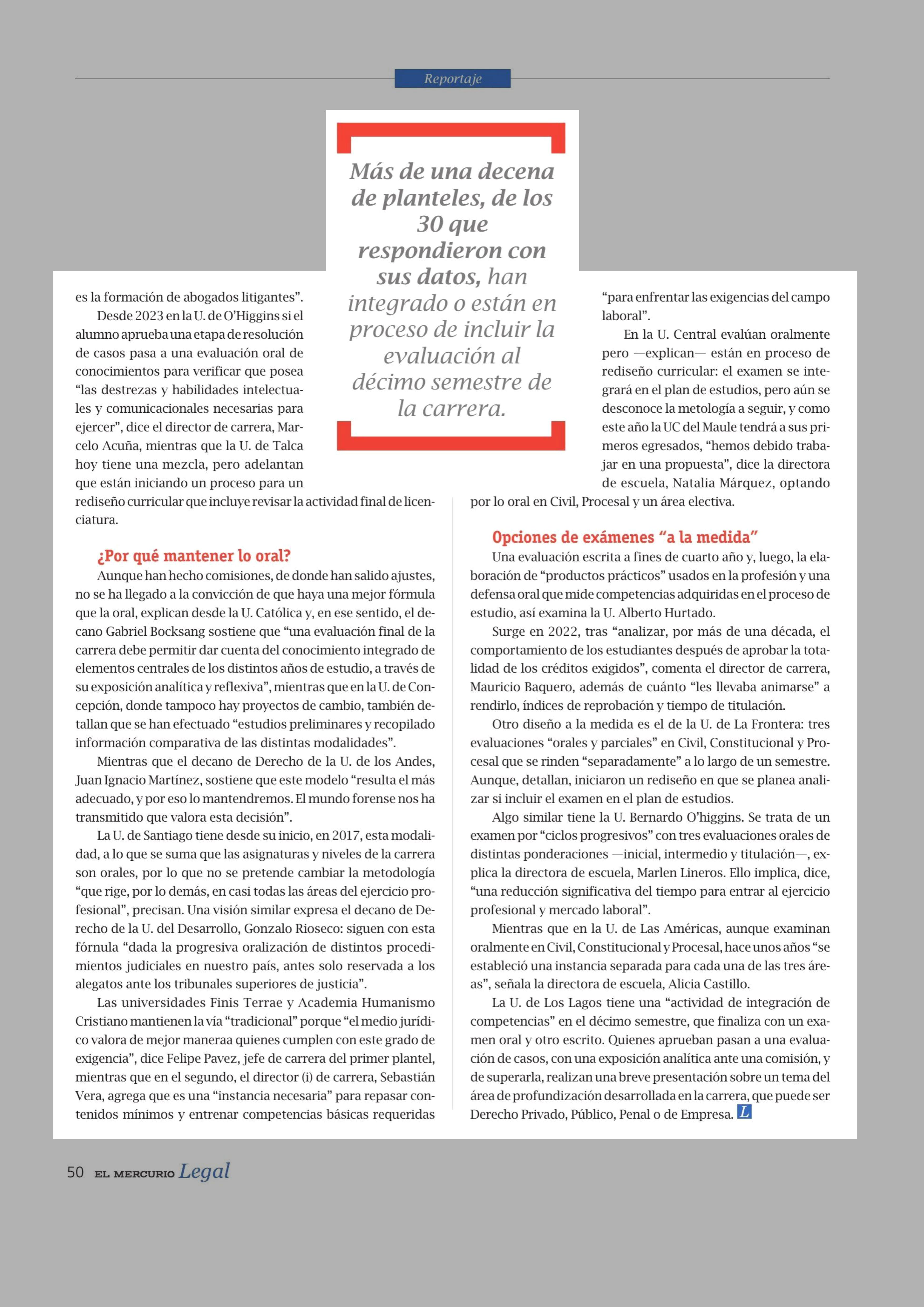 Ni solo oral ni solo escrito: La nueva tendencia del examen de grado en Derecho 31-12-2024 El Mercurio Legal |