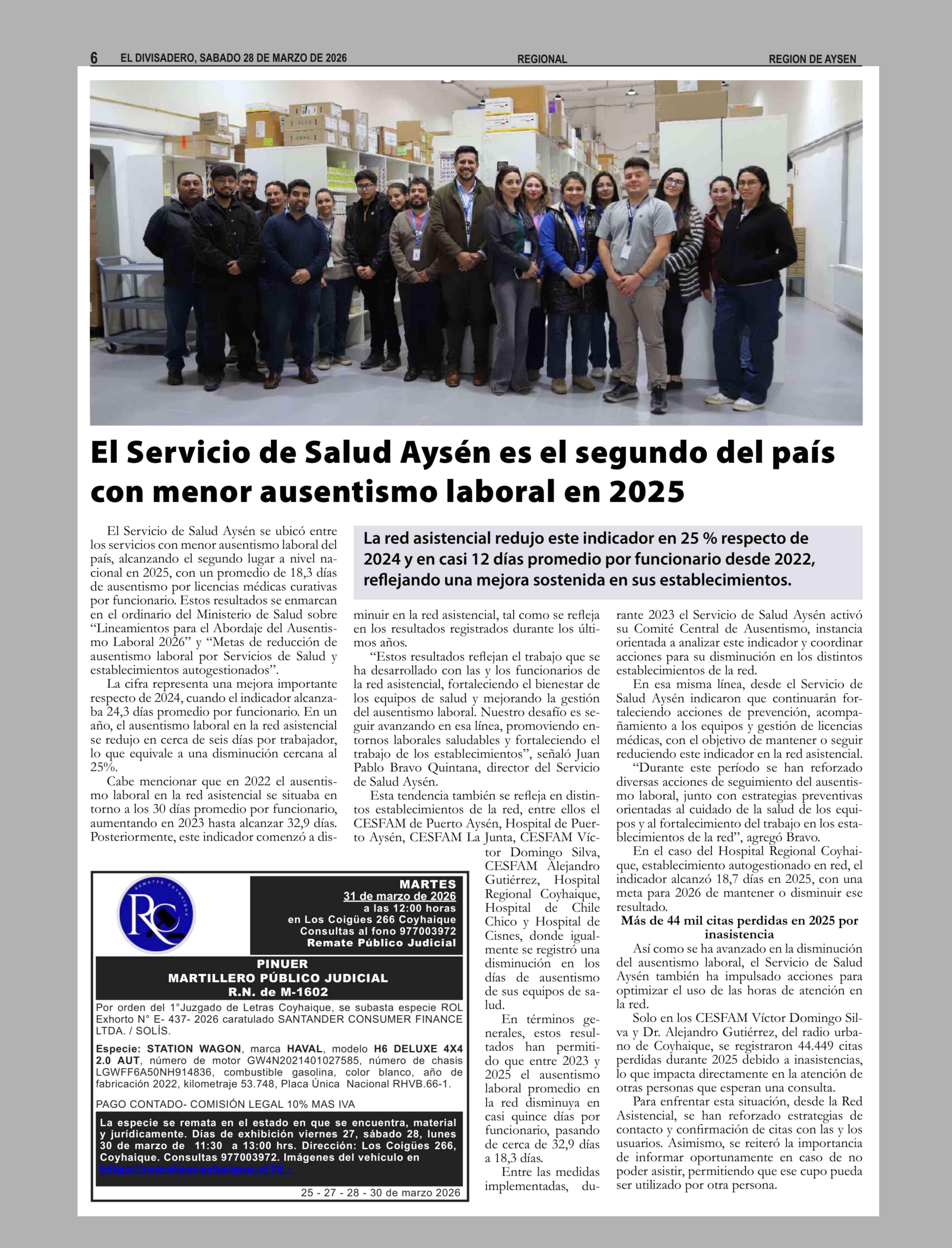 Título: El Servicio de Salud Aysen es el segundo del país con menor ausentismo laboral en 2025