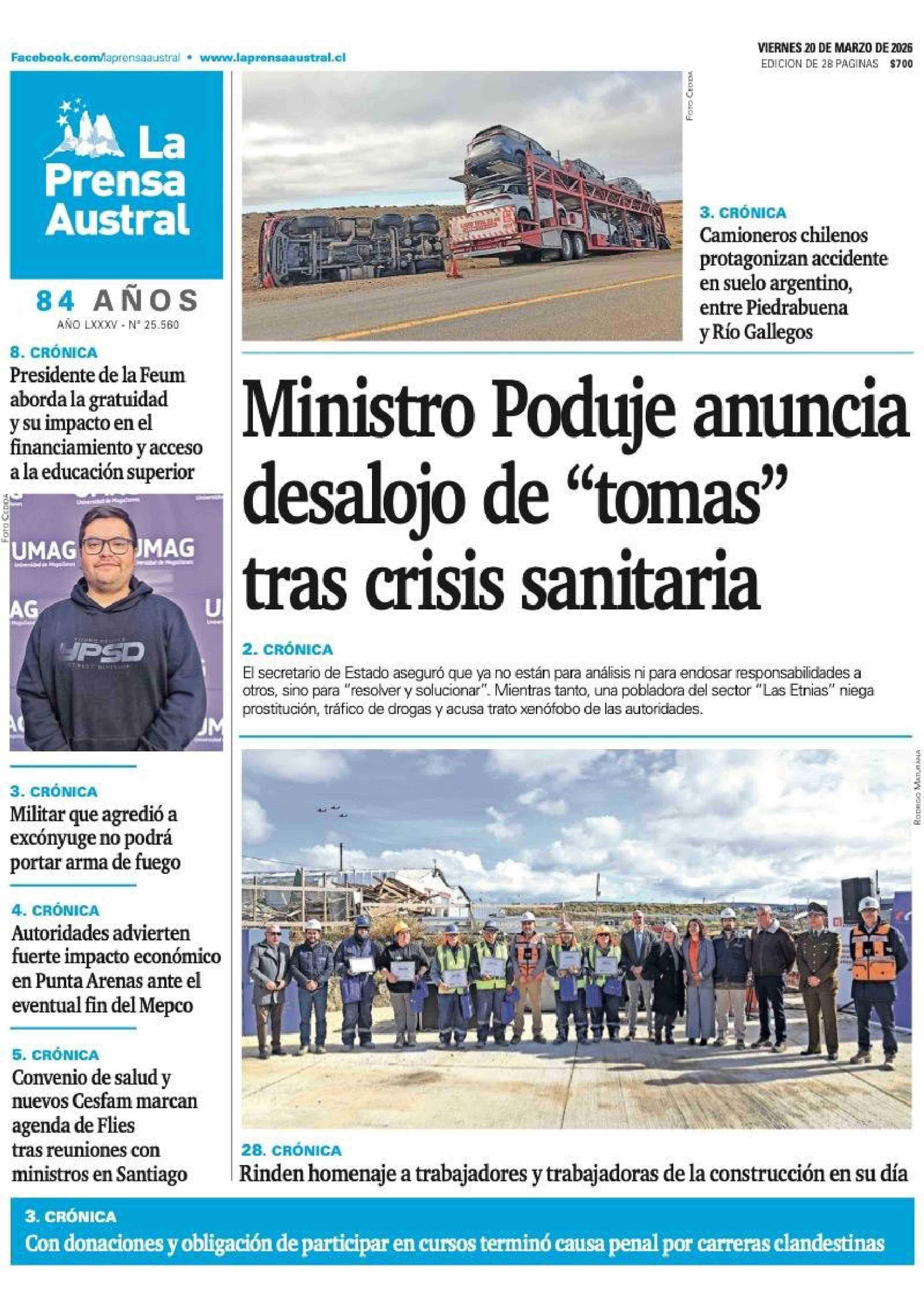 | Fecha: | 20-03-2026 | Sector: | Portada | Región: | Región de Magallanes y de la Antártica Chilena |