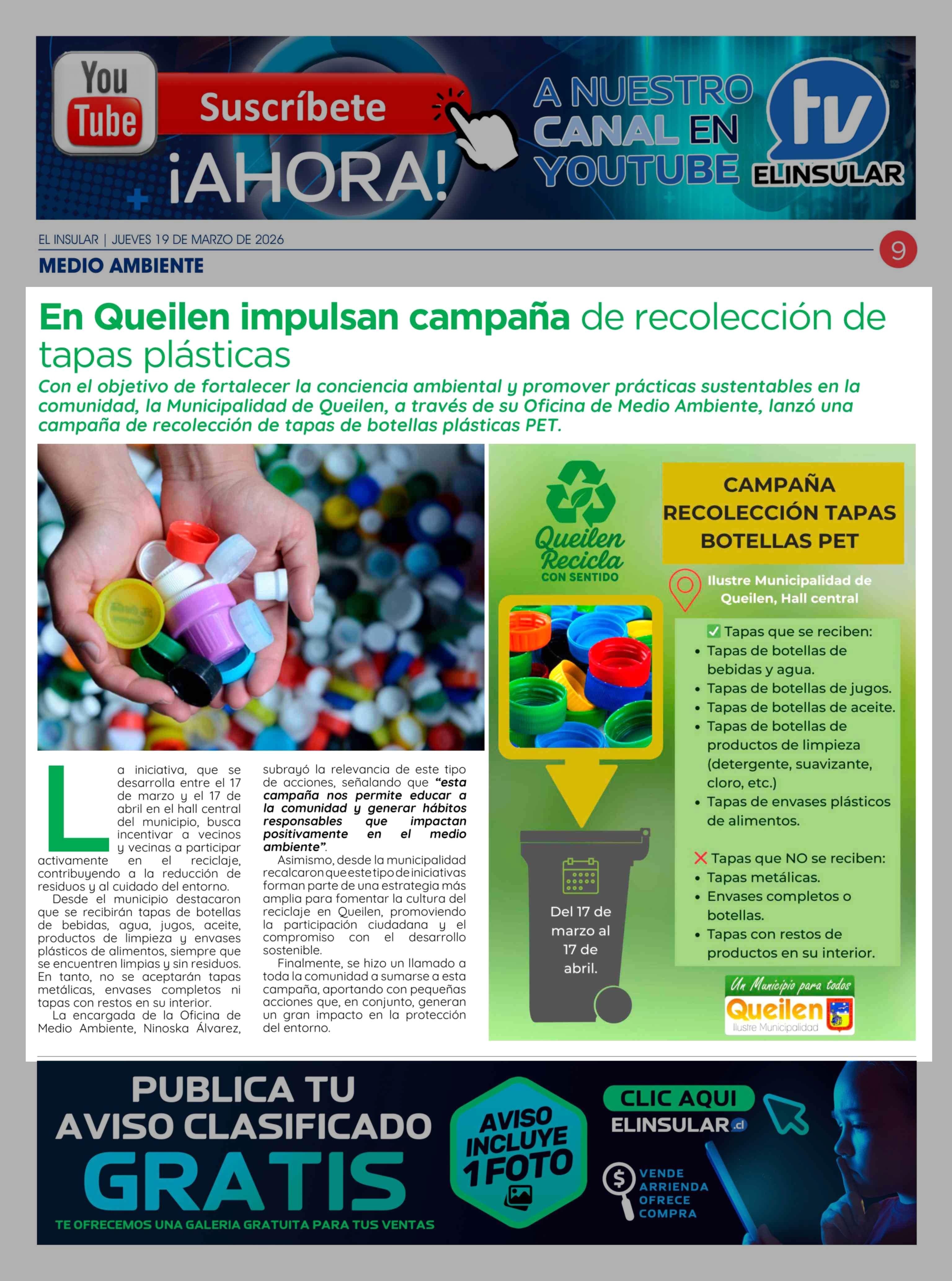 En Queilen impulsan campaña de recolección de tapas plásticas 19-03-2026 El Insular |