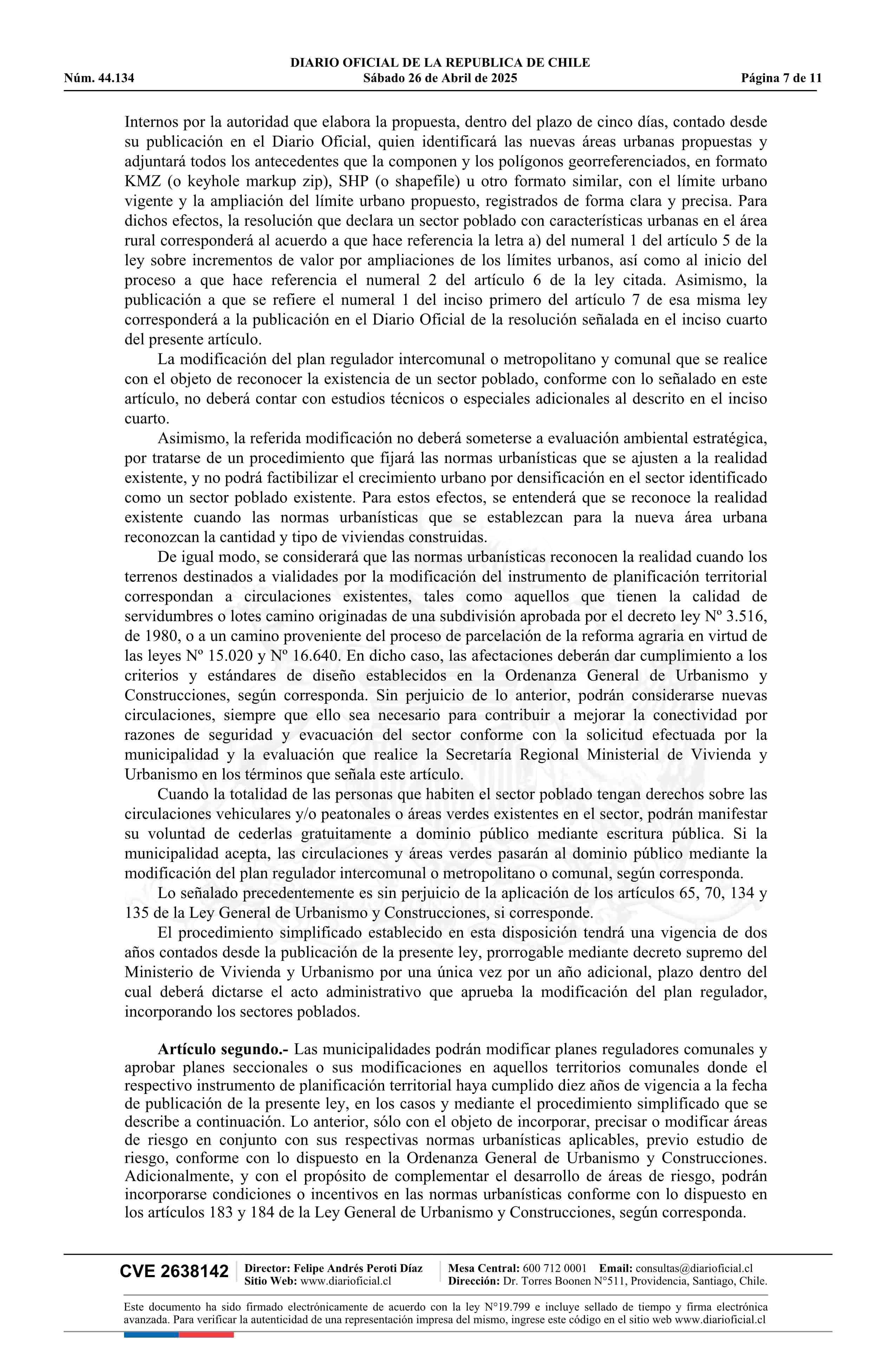 Ley número 21.741.- Modifica diversos cuerpos legales con el objeto de atender fenómenos urbanos consolidados en el territorio, urgentes, que afectan a la población 26-04-2025 Diario Oficial Edición Electrónica |