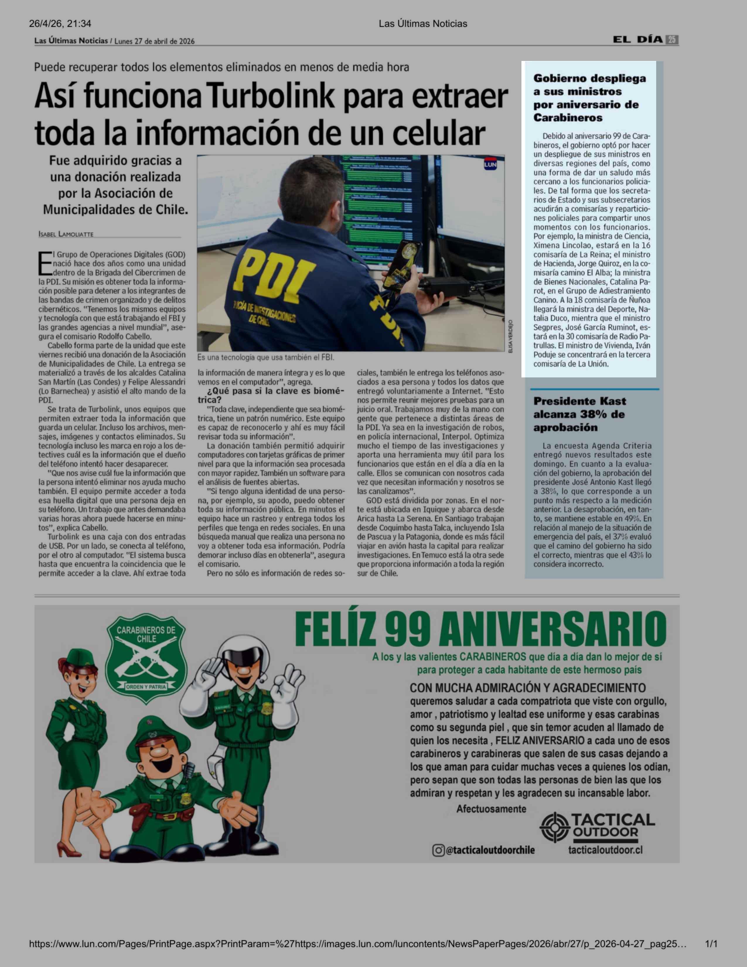 | Fecha: | 27-04-2026 | Sector: | Noticia general | Región: | Región Metropolitana de Santiago |