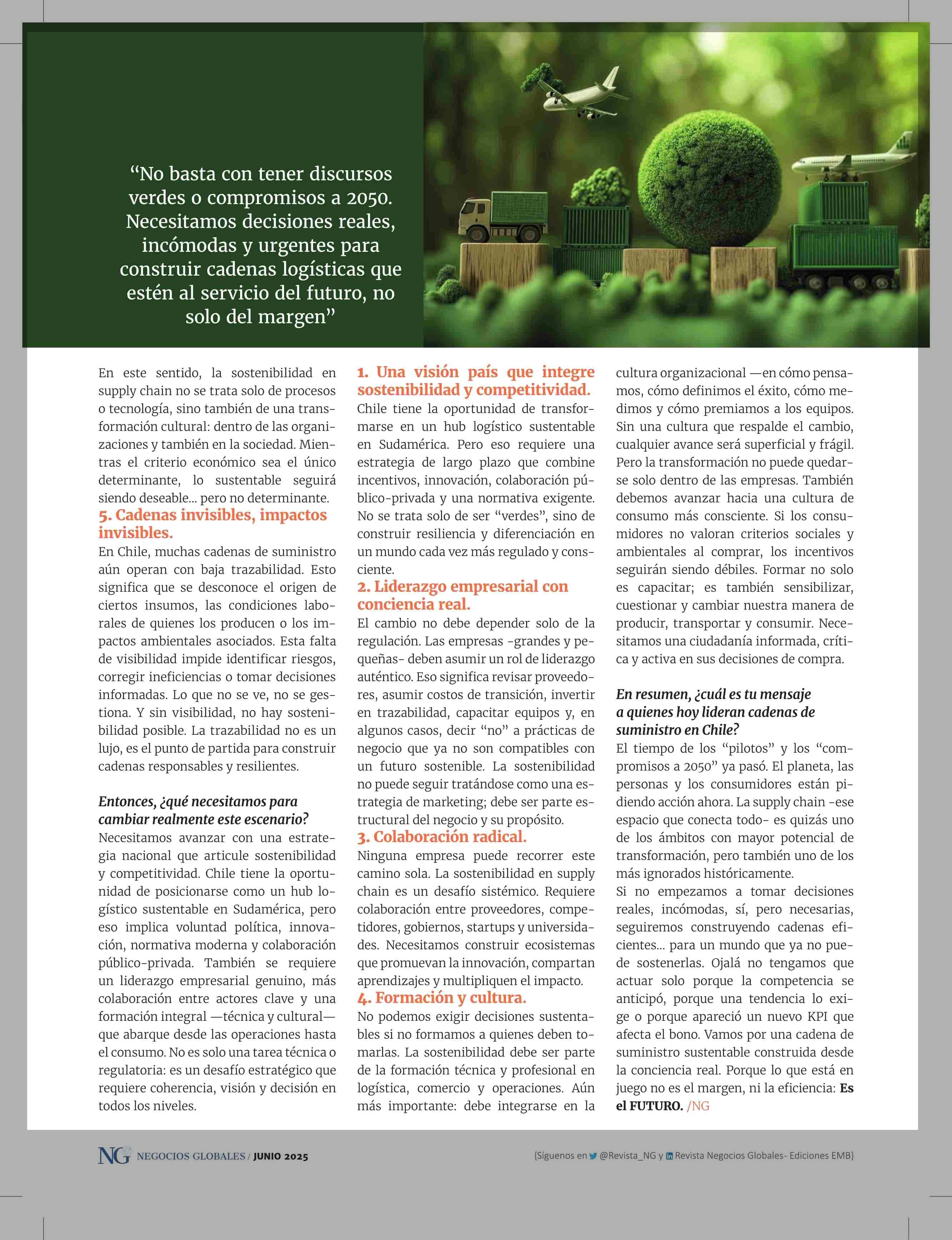 “Seguimos construyendo cadenas eficientes... para un mundo que ya no puede sostenerlas” 23-06-2025 Revista NG |