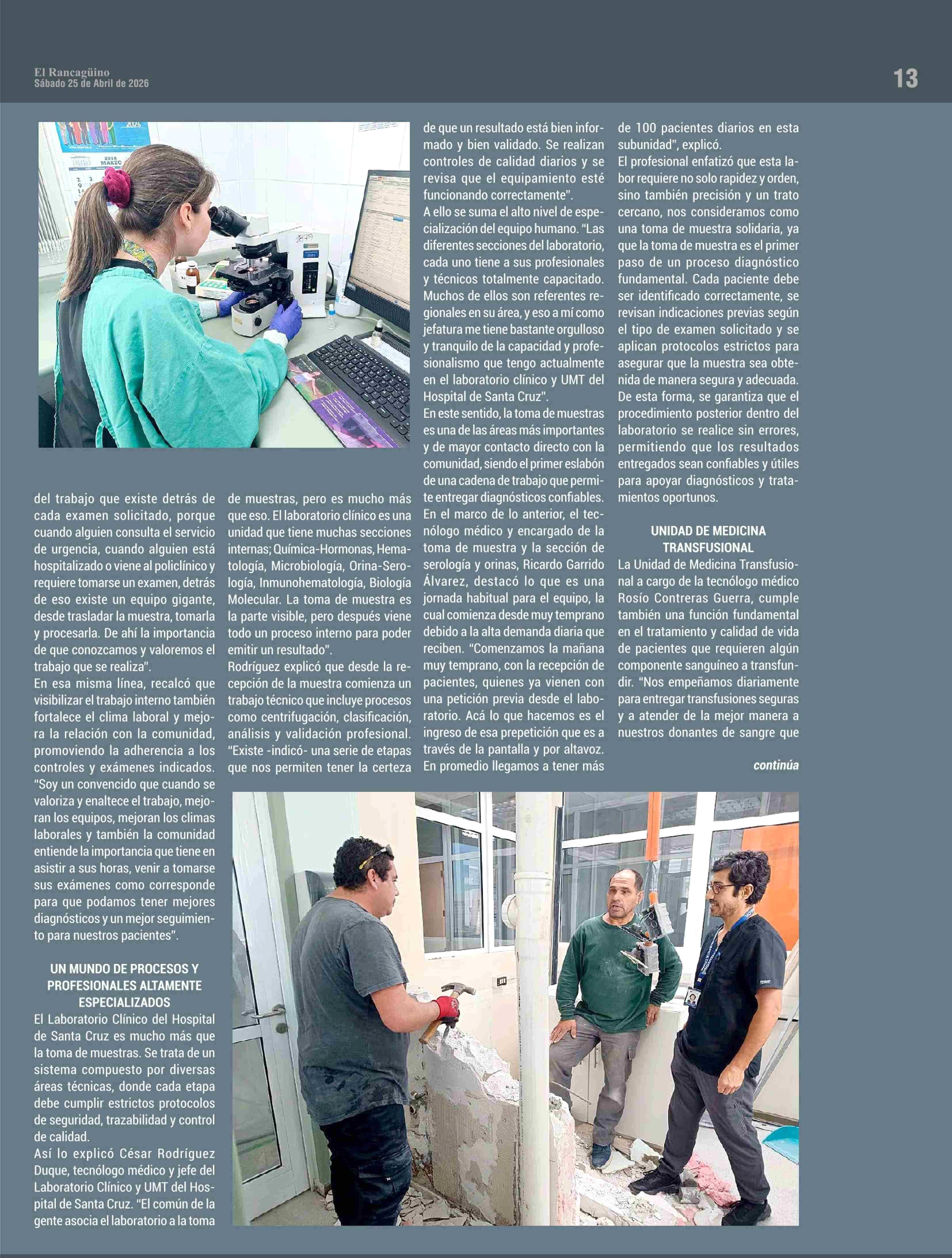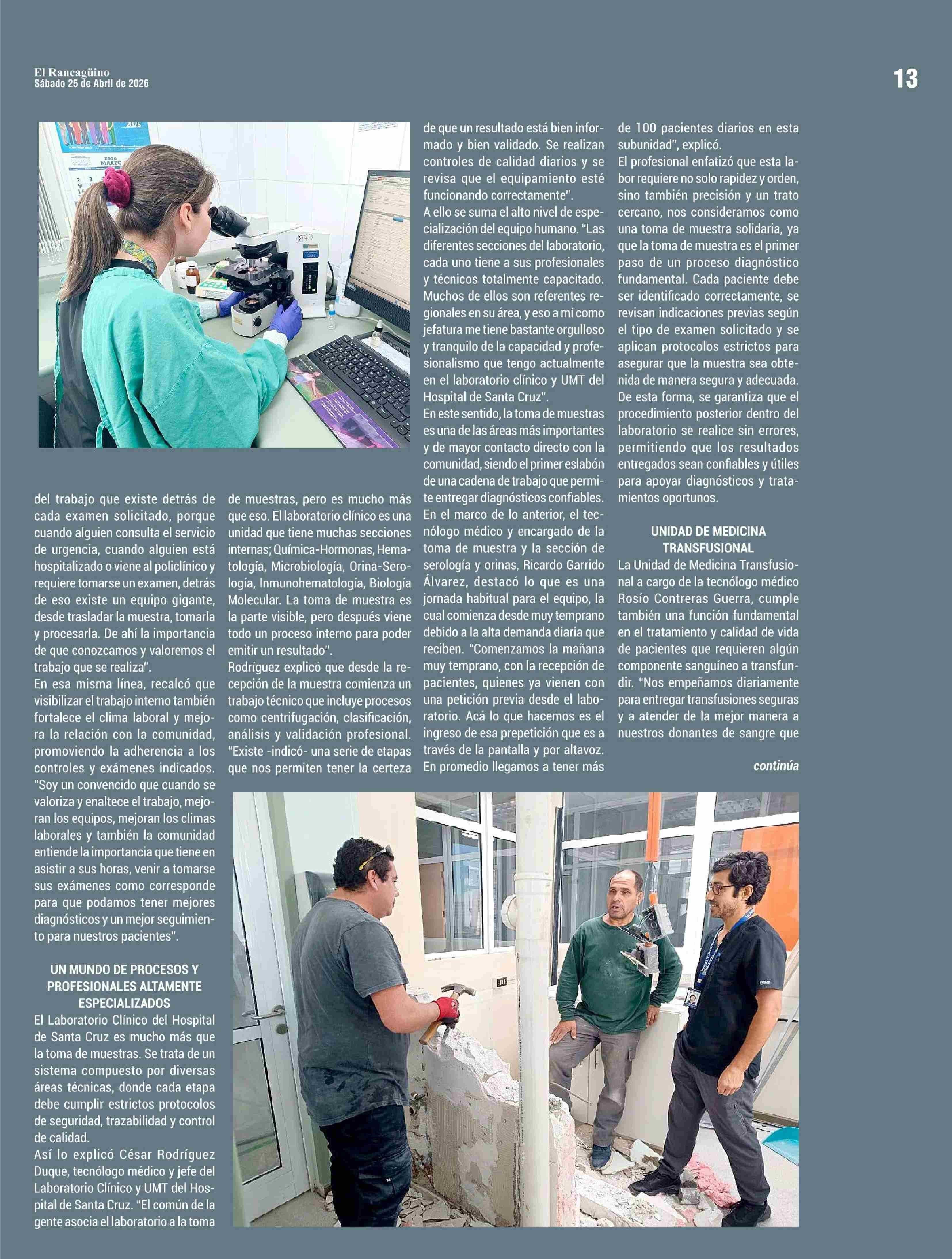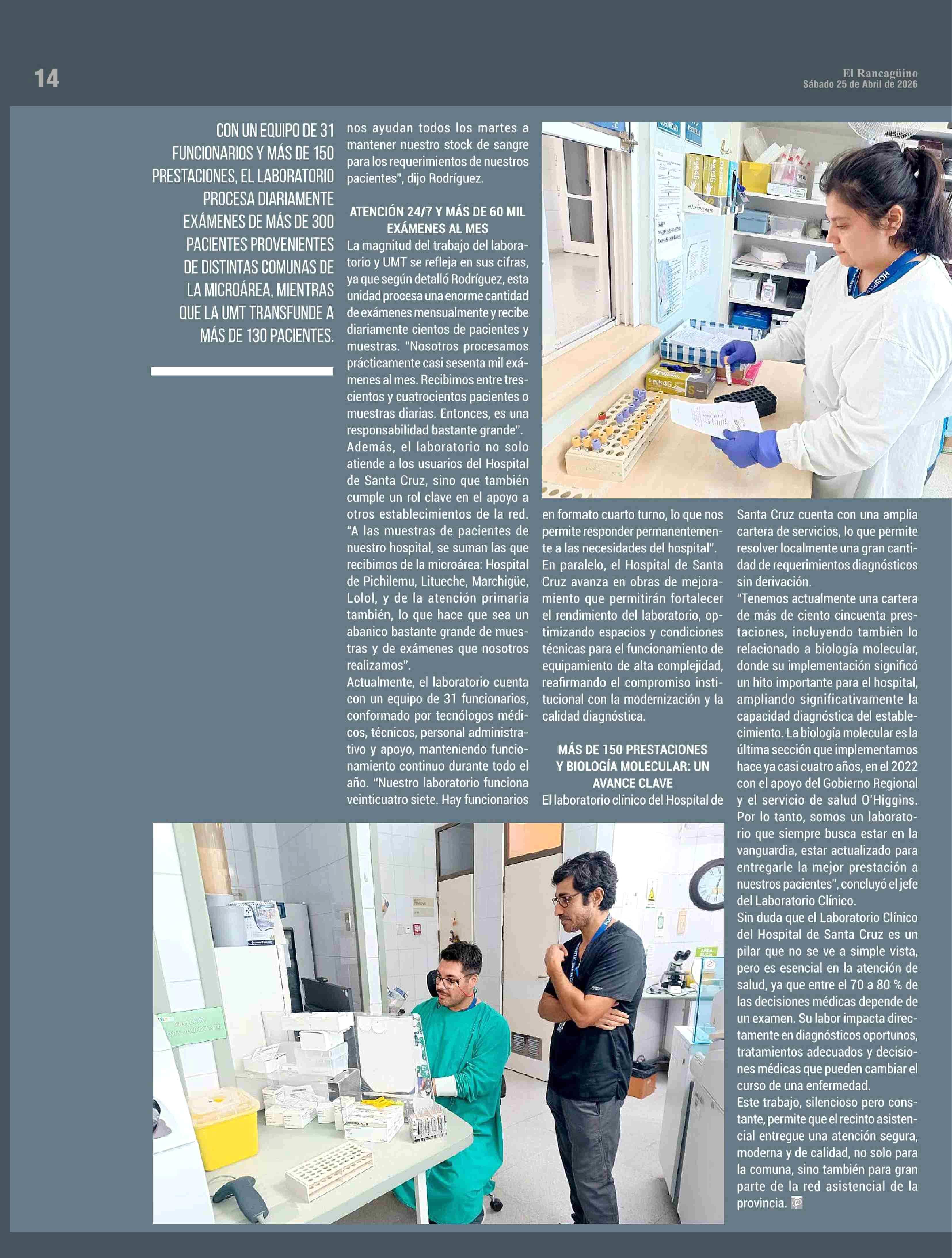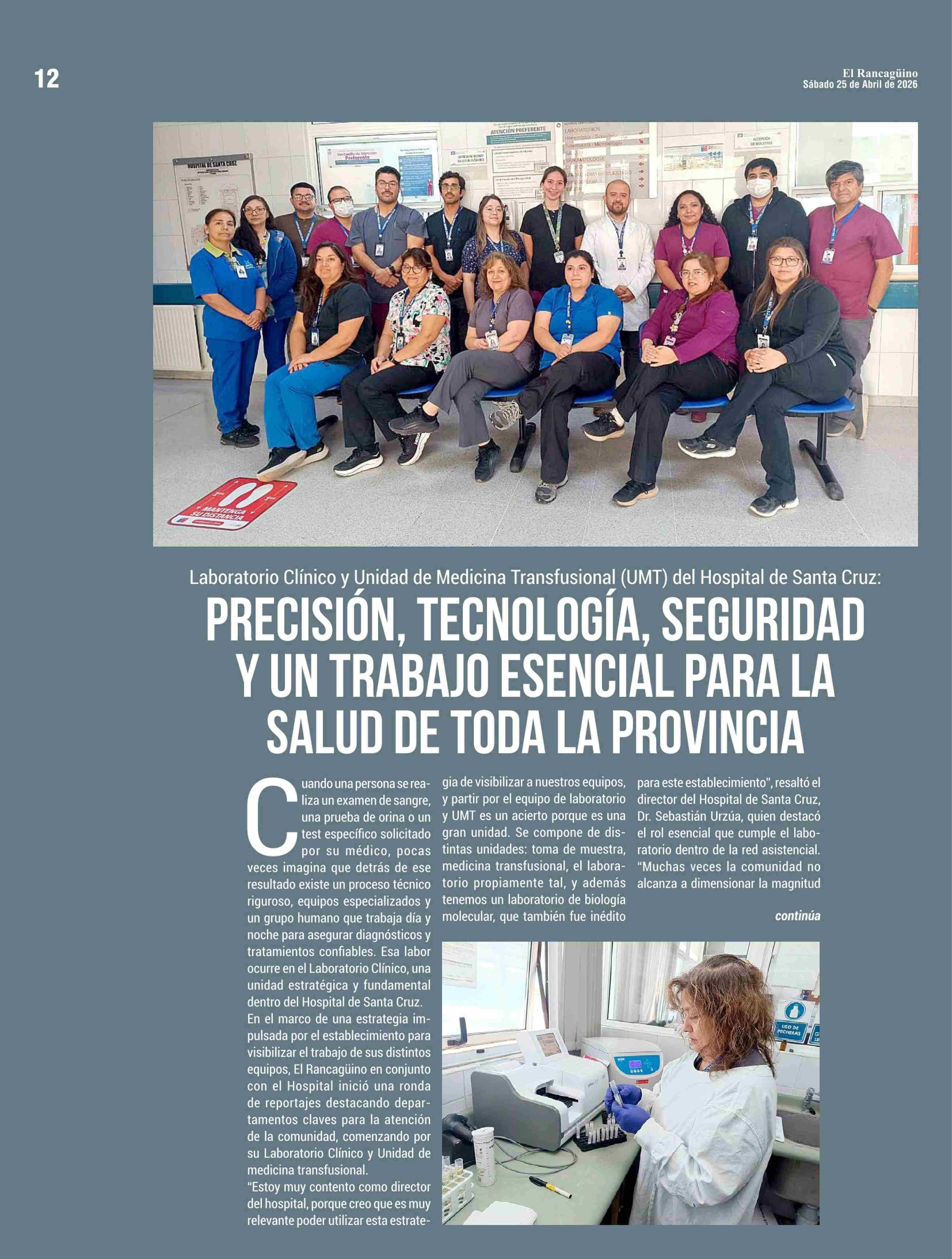 PRECISIÓN, TECNOLOGÍA, SEGURIDAD Y UN TRABAJO ESENCIAL PARA LA SALUD DE TODA LA PROVINCIA 25-04-2026 El Rancagüino |