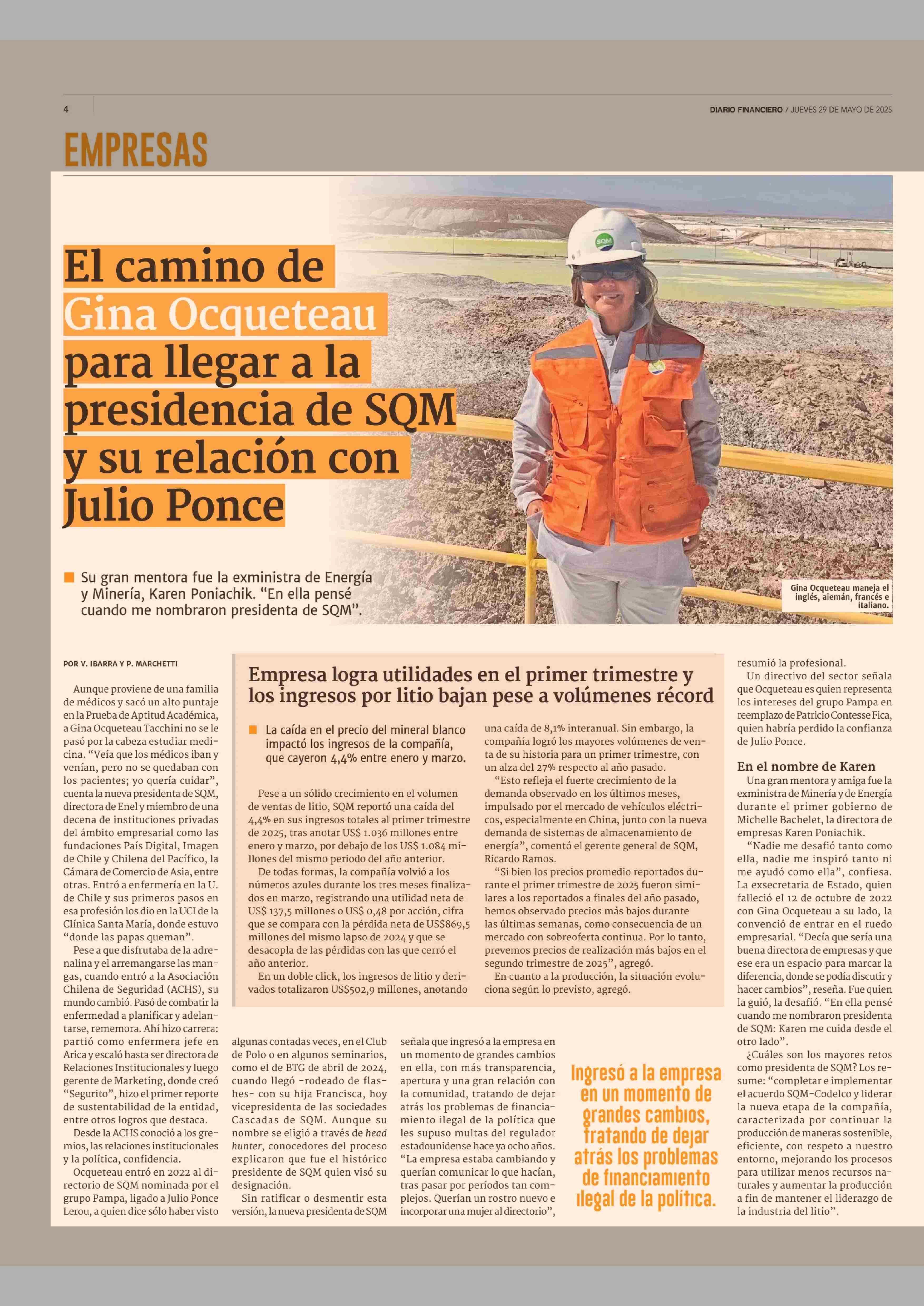 | Título: | El camino de Gina Ocqueteau para llegar a la presidencia de SQM y su relación con Julio Ponce |
