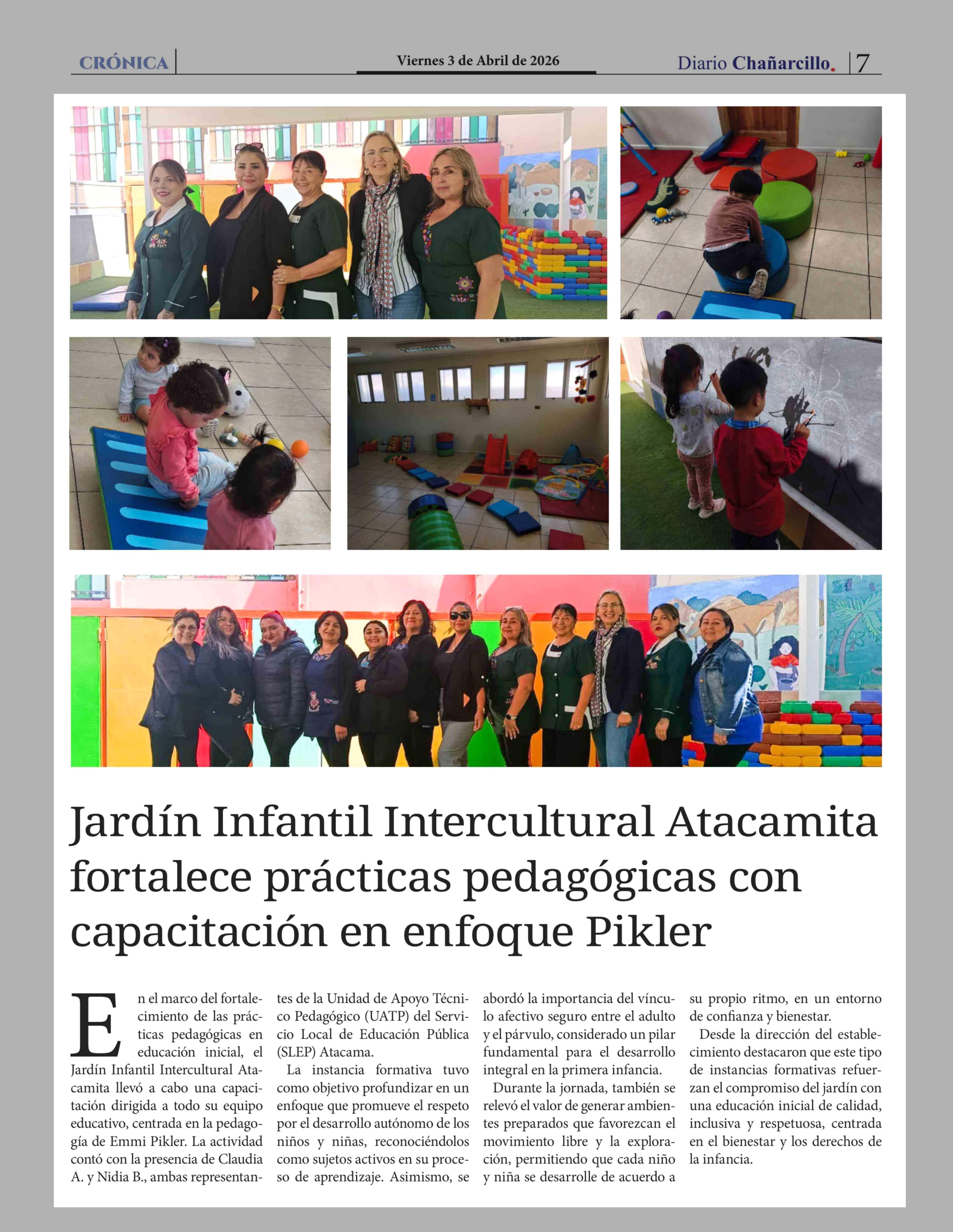 Jardín Infantil Intercultural Atacamita fortalece prácticas pedagógicas con capacitación en enfoque Pikler 03-04-2026 Diario Chañarcillo |