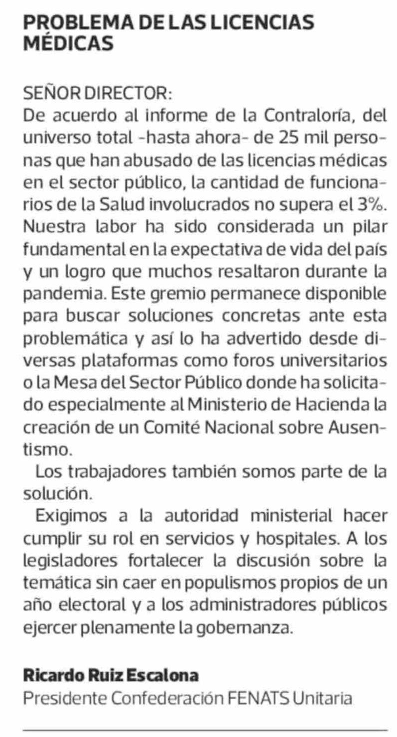 CARTAS: PROBLEMA DE LAS LICENCIAS MÉDICAS