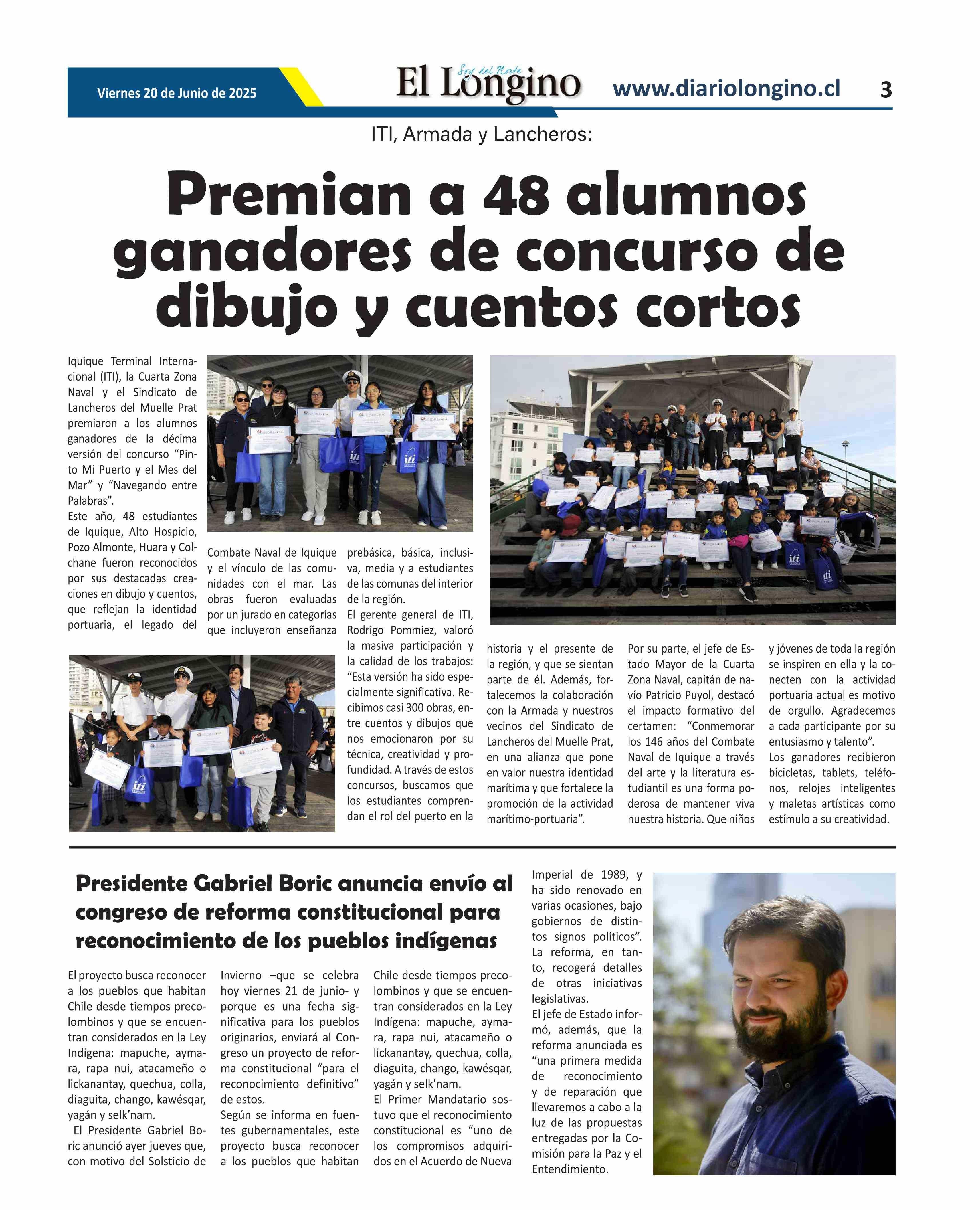 | Fecha: | 20-06-2025 | Sector: | Noticia general | Región: | Región de Tarapacá |
