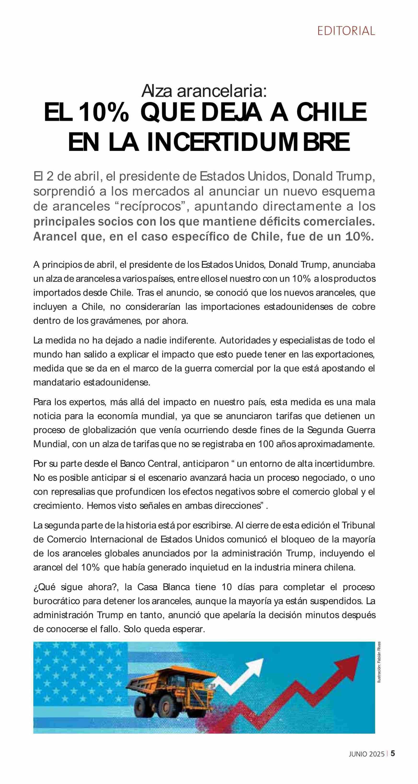 EDITORIAL: EL IO% QUEDEJA CHILE EN LA INCERTIDUM BRE 12-06-2025 Revista Nueva Minería & Energía |