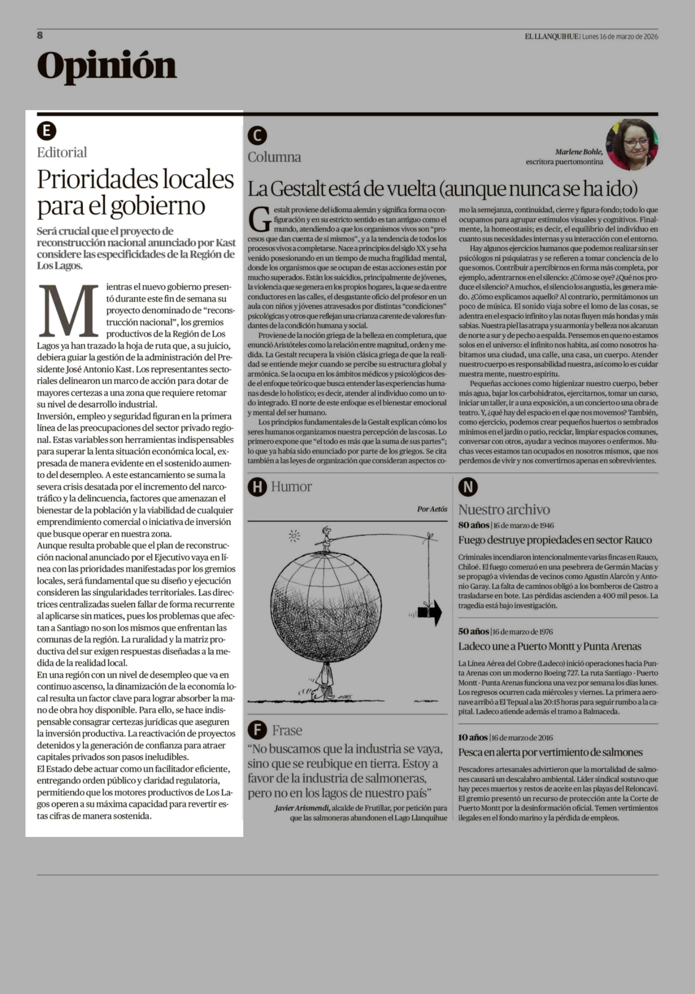 Fecha: 16-03-2026 Sector: Editorial Región: Región de Los Lagos