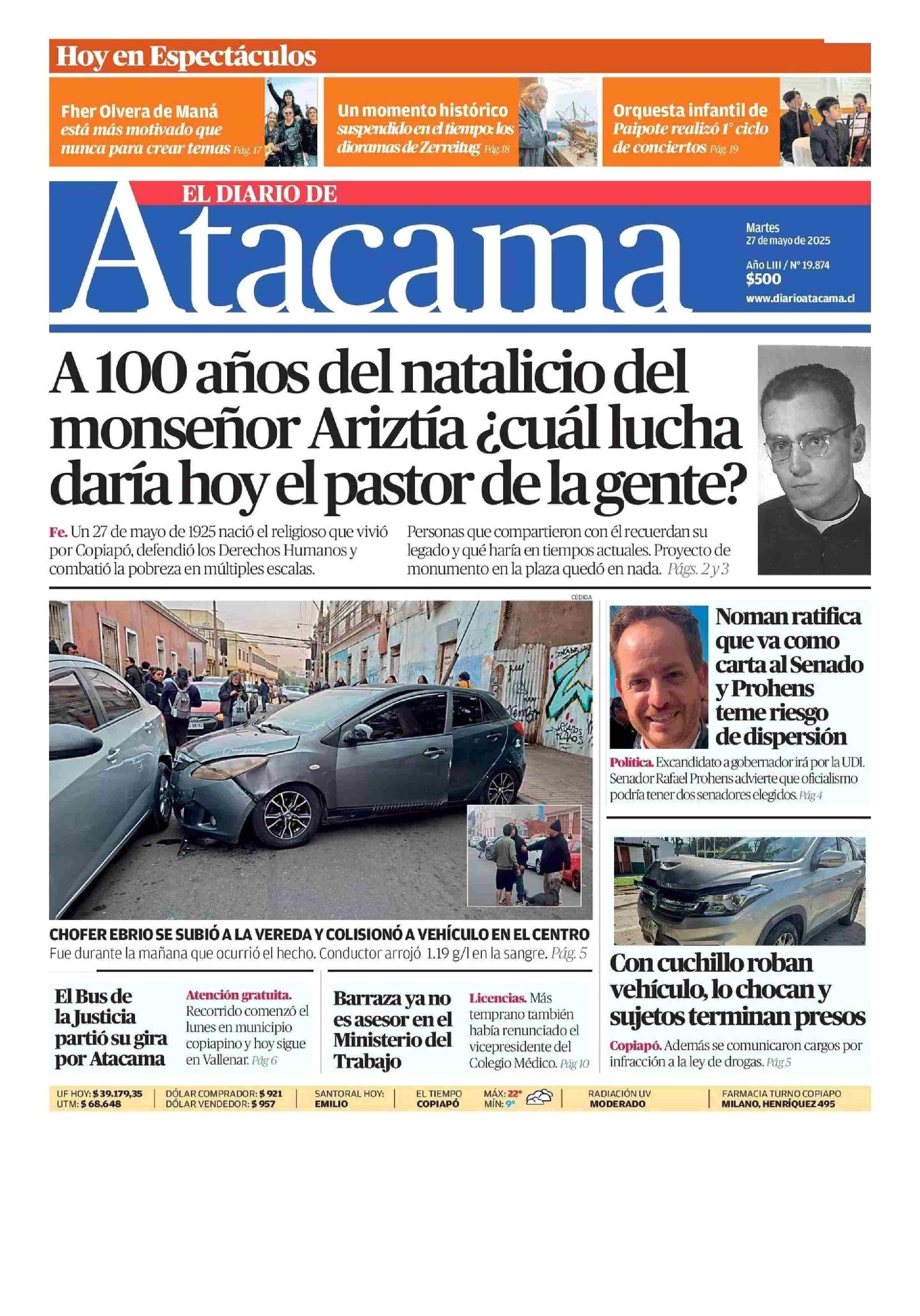 Fecha: 27-05-2025 Sector: Portada Región: Región de Atacama