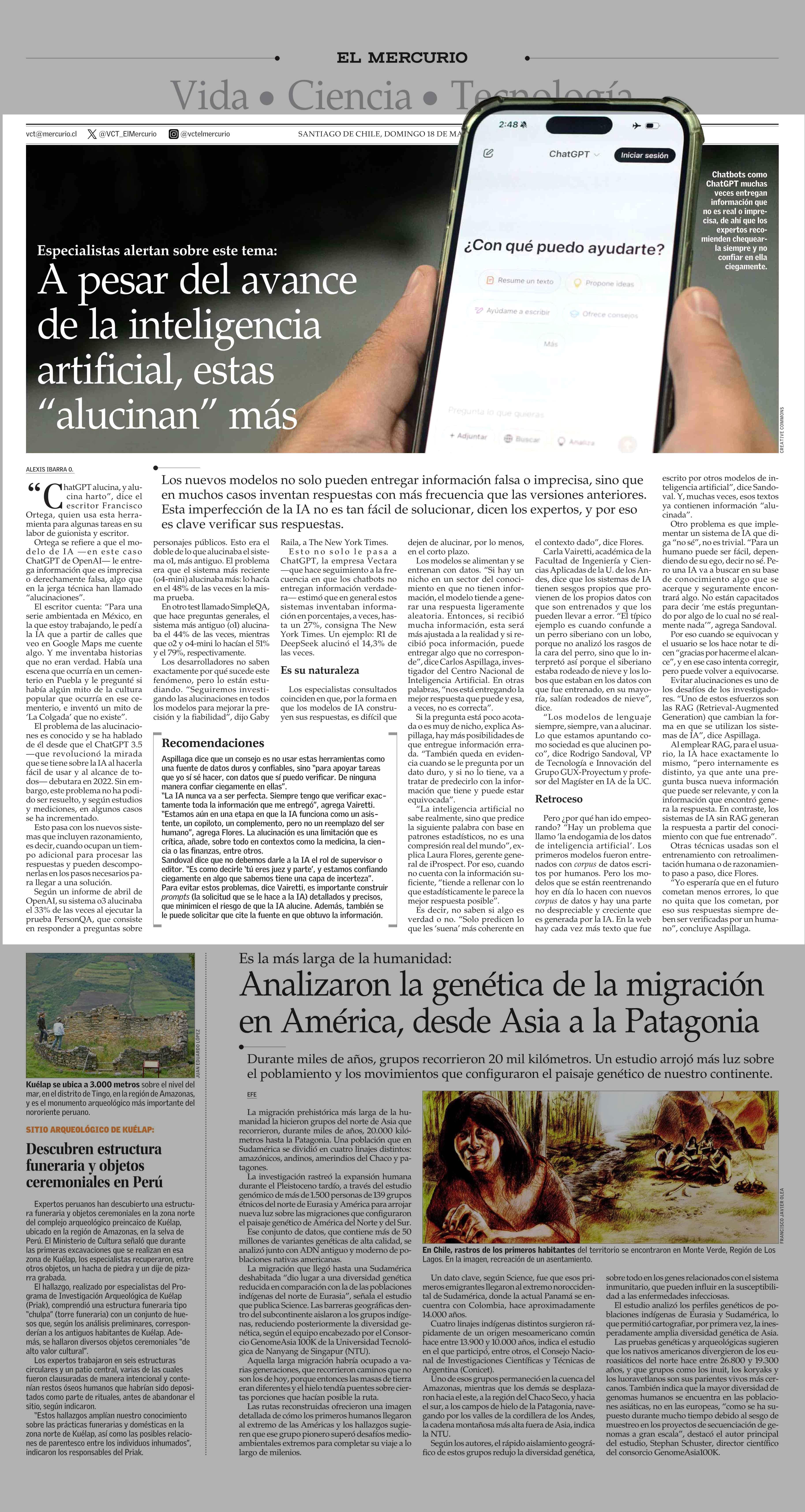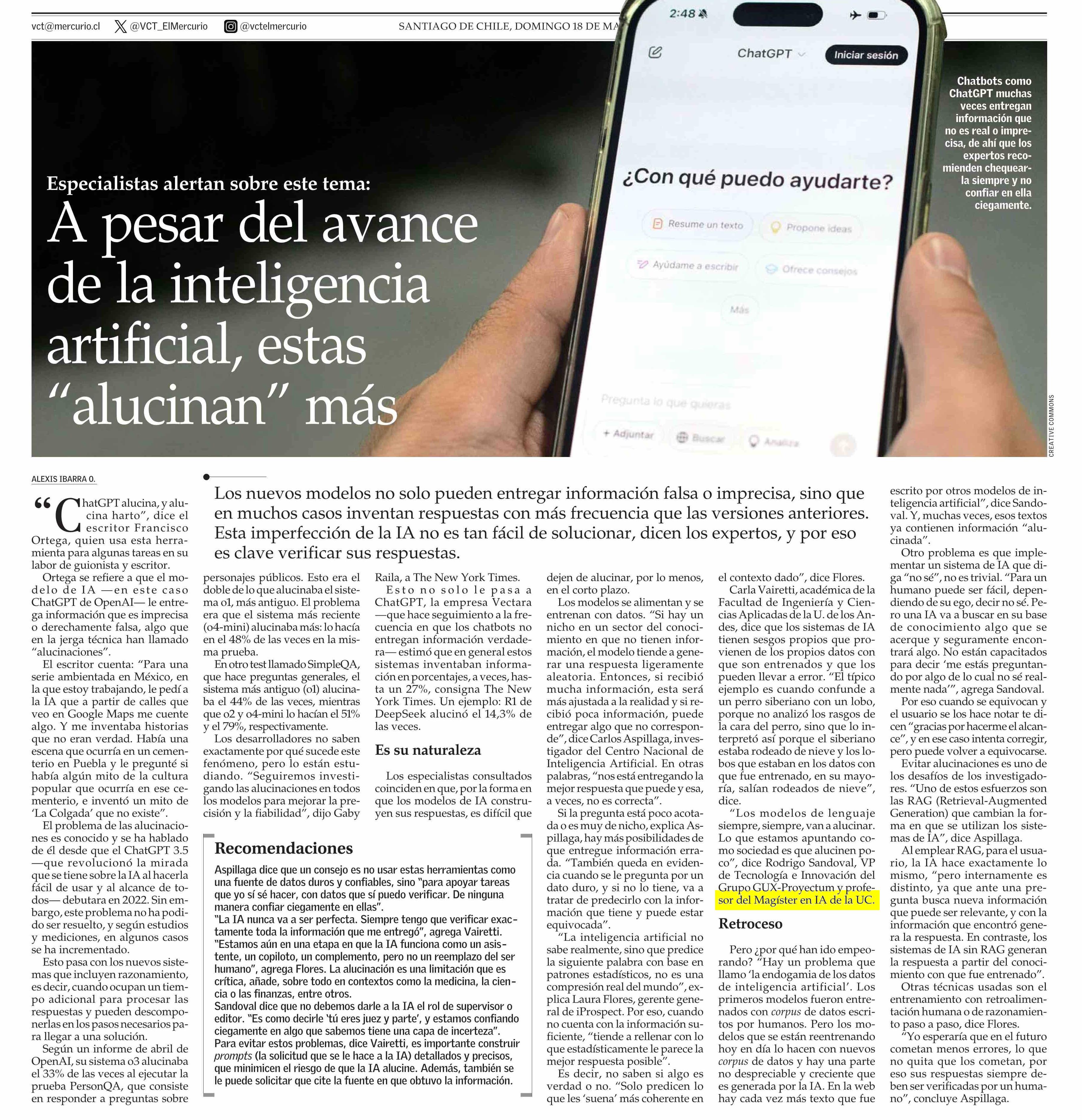 A pesar del avance de la inteligencia artificial, estas "alucinan" más 18-05-2025 El Mercurio |