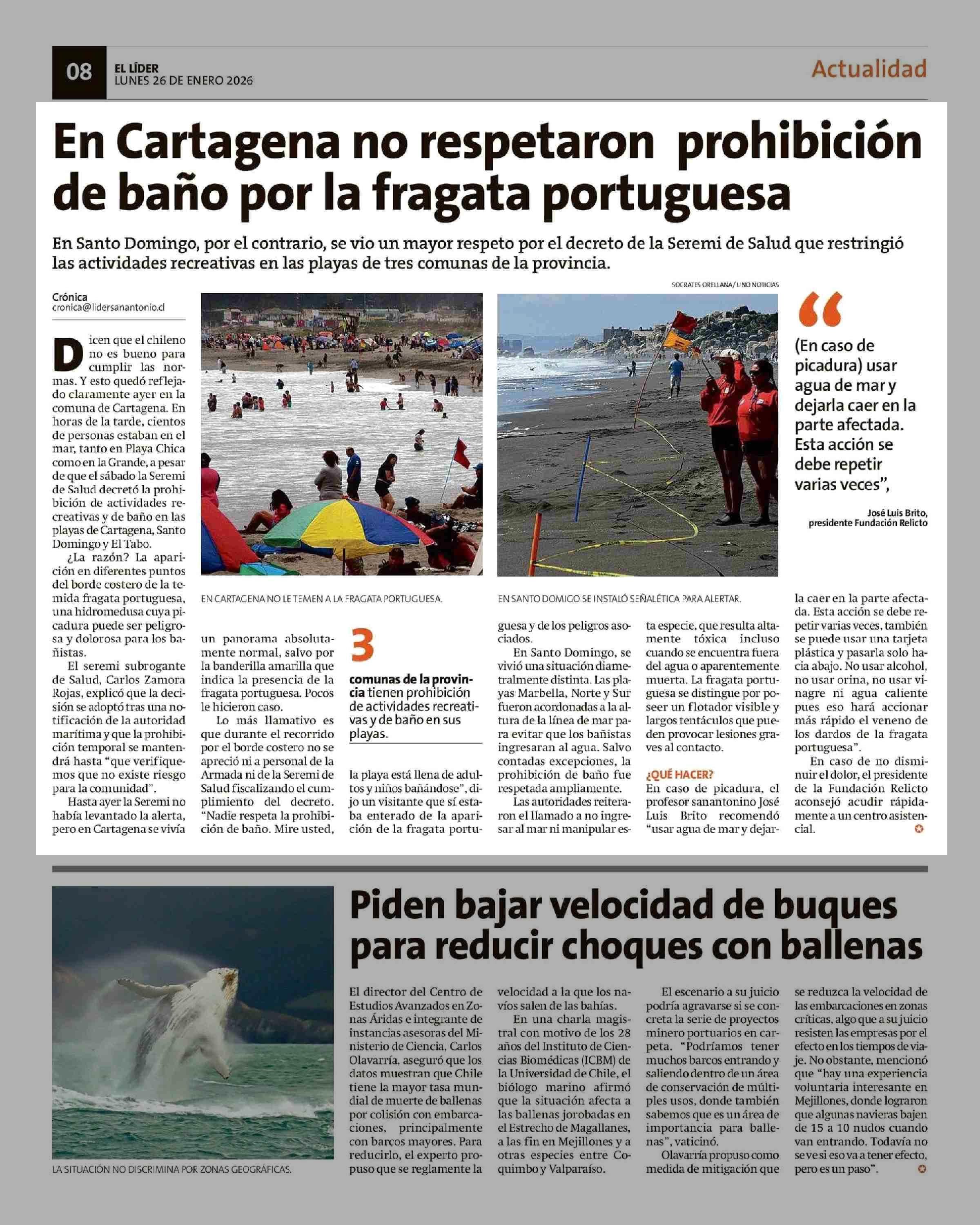 En Cartagena no respetaron prohibición de baño por la fragata portuguesa 26-01-2026 El Líder |