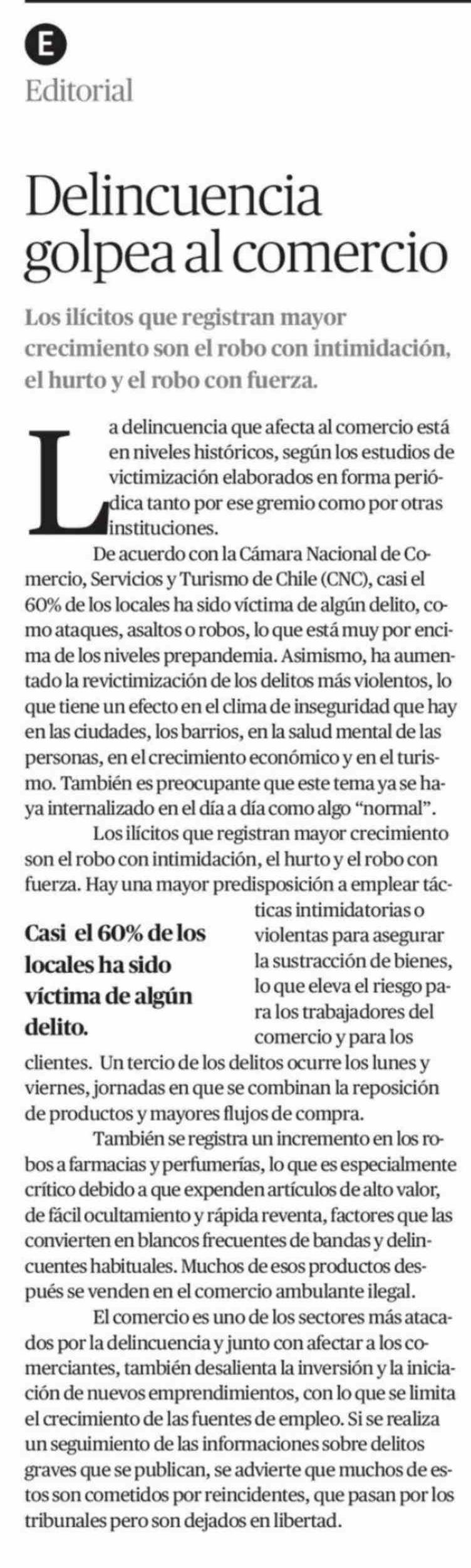 | Título: | Editorial: Delincuencia golpea al comercio |