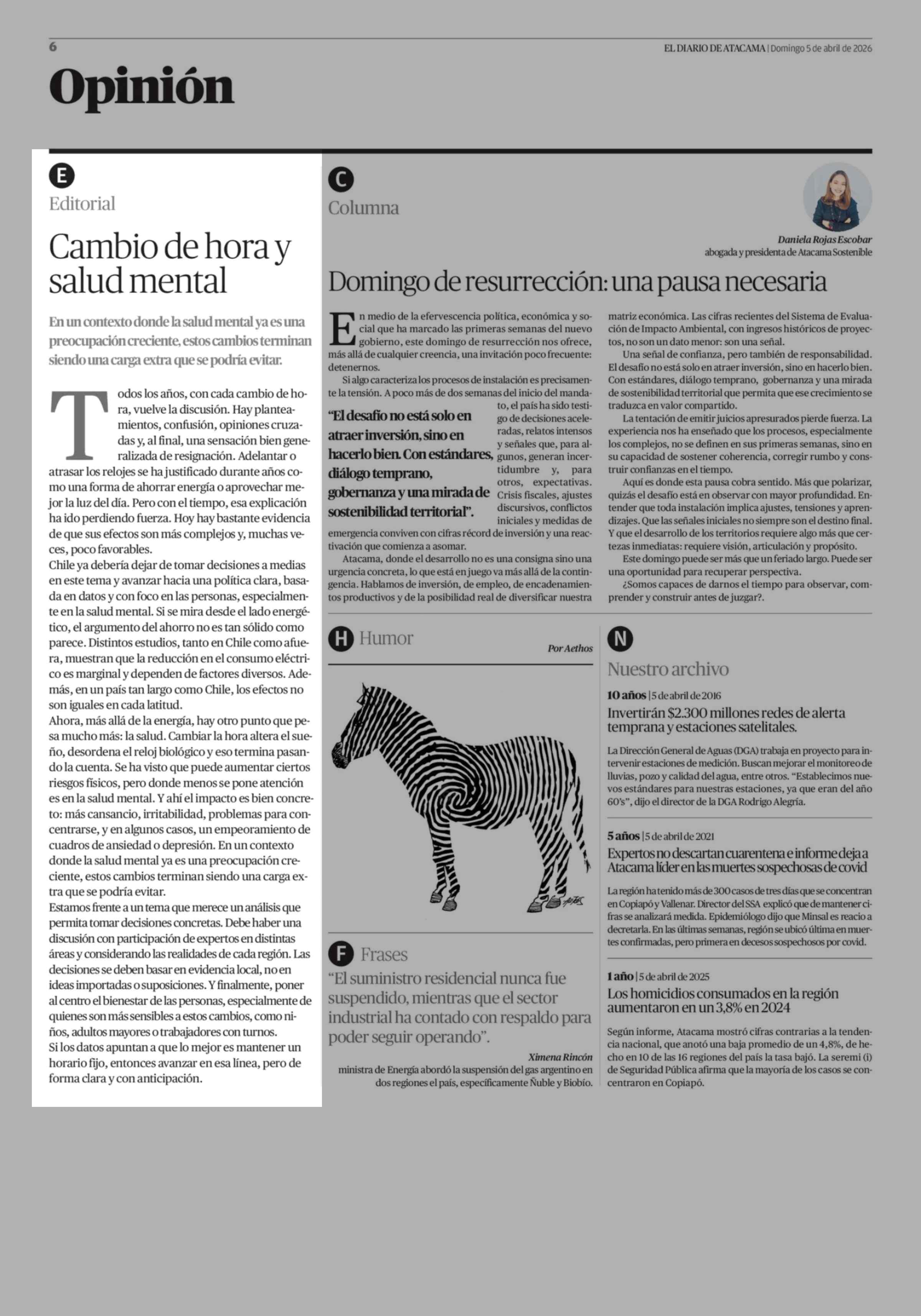 Editorial: Cambio de hora y salud mental 05-04-2026 El Diario de Atacama |