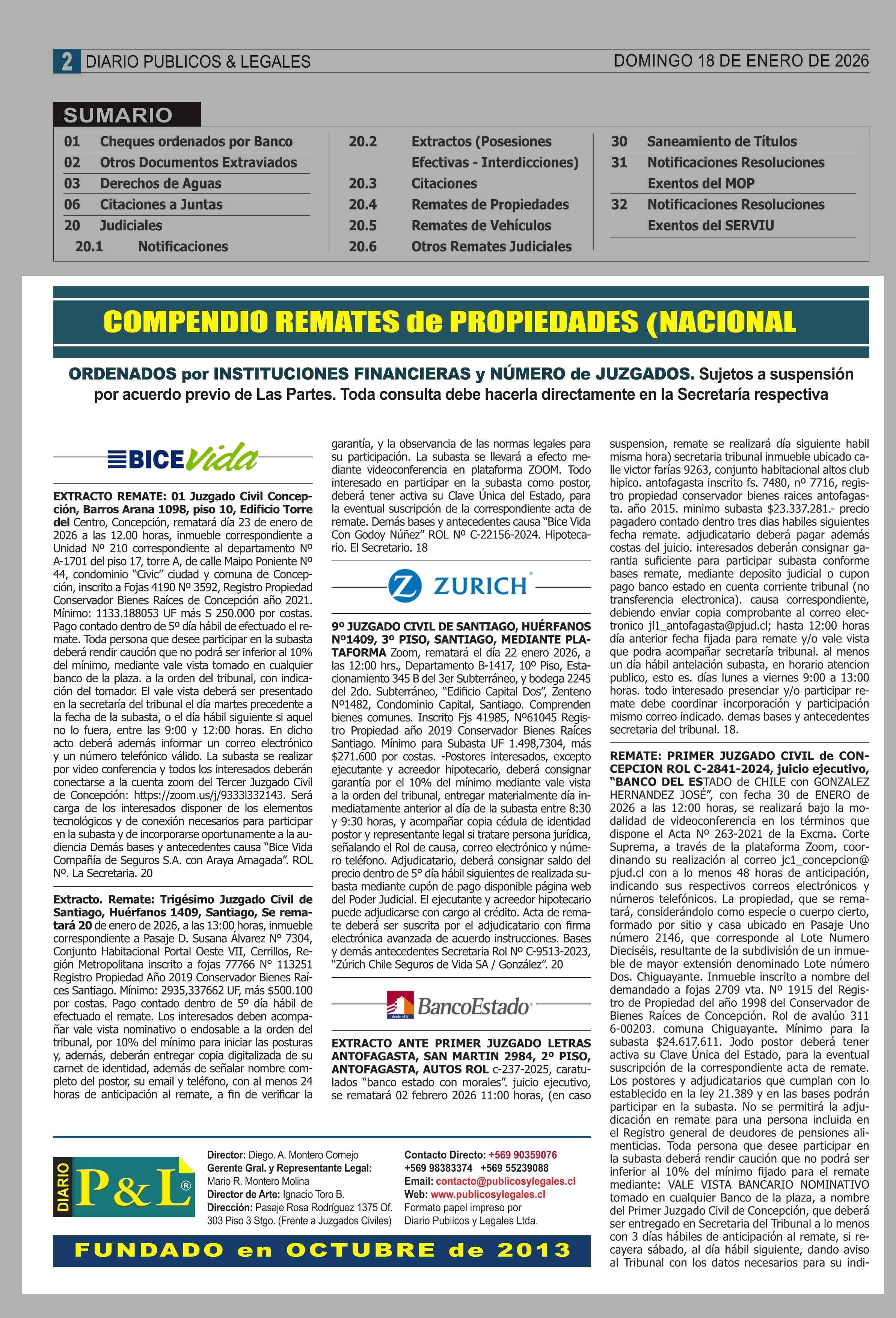 COMPENDIO REMATES de PROPIEDADES (NACIONAL 18-01-2026 P&L Públicos y Legales |