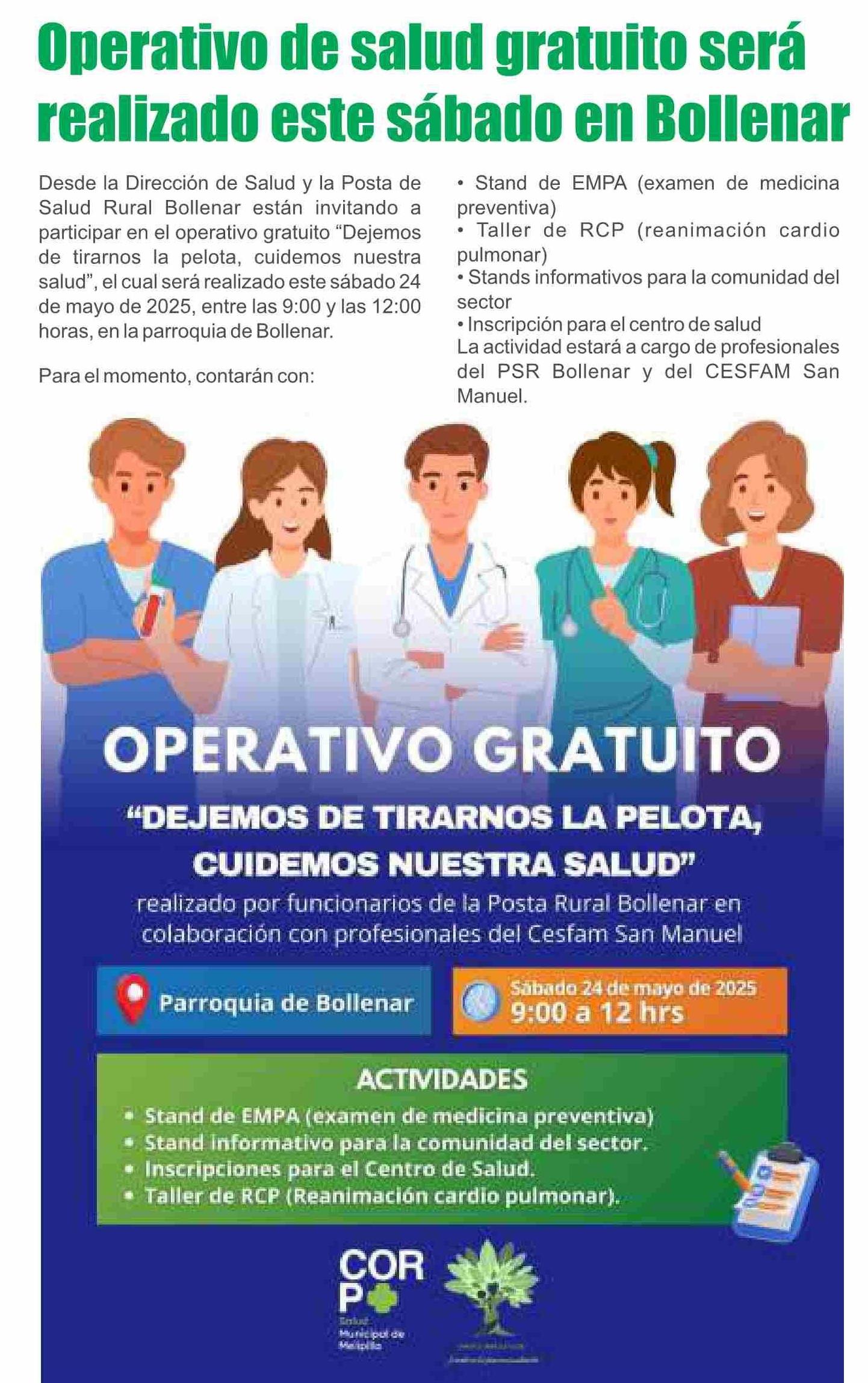 Operativo de salud gratuito será realizado este sábado en Bollenar 23-05-2025 El Labrador |