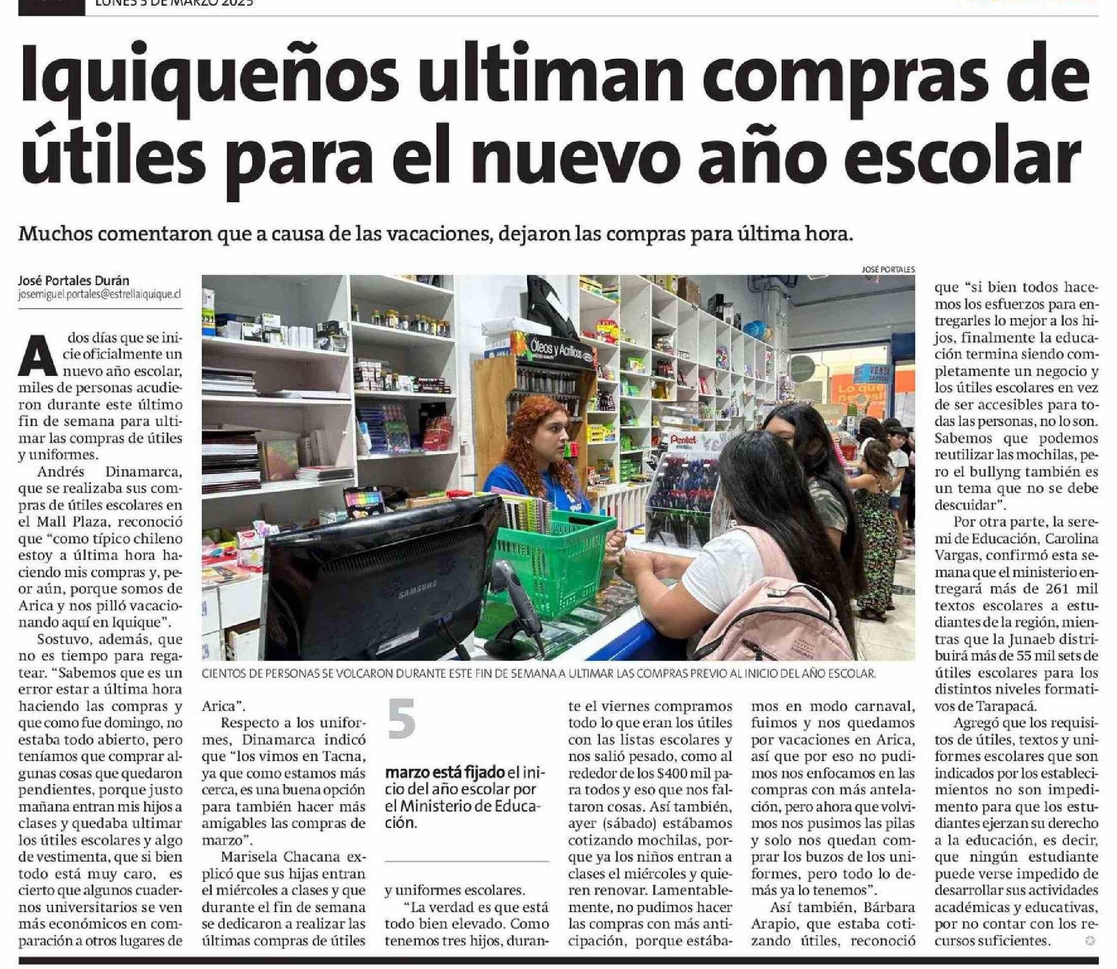 Iquiqueños ultiman compras de útiles para el nuevo año escolar 03-03-2025 La Estrella de Iquique |