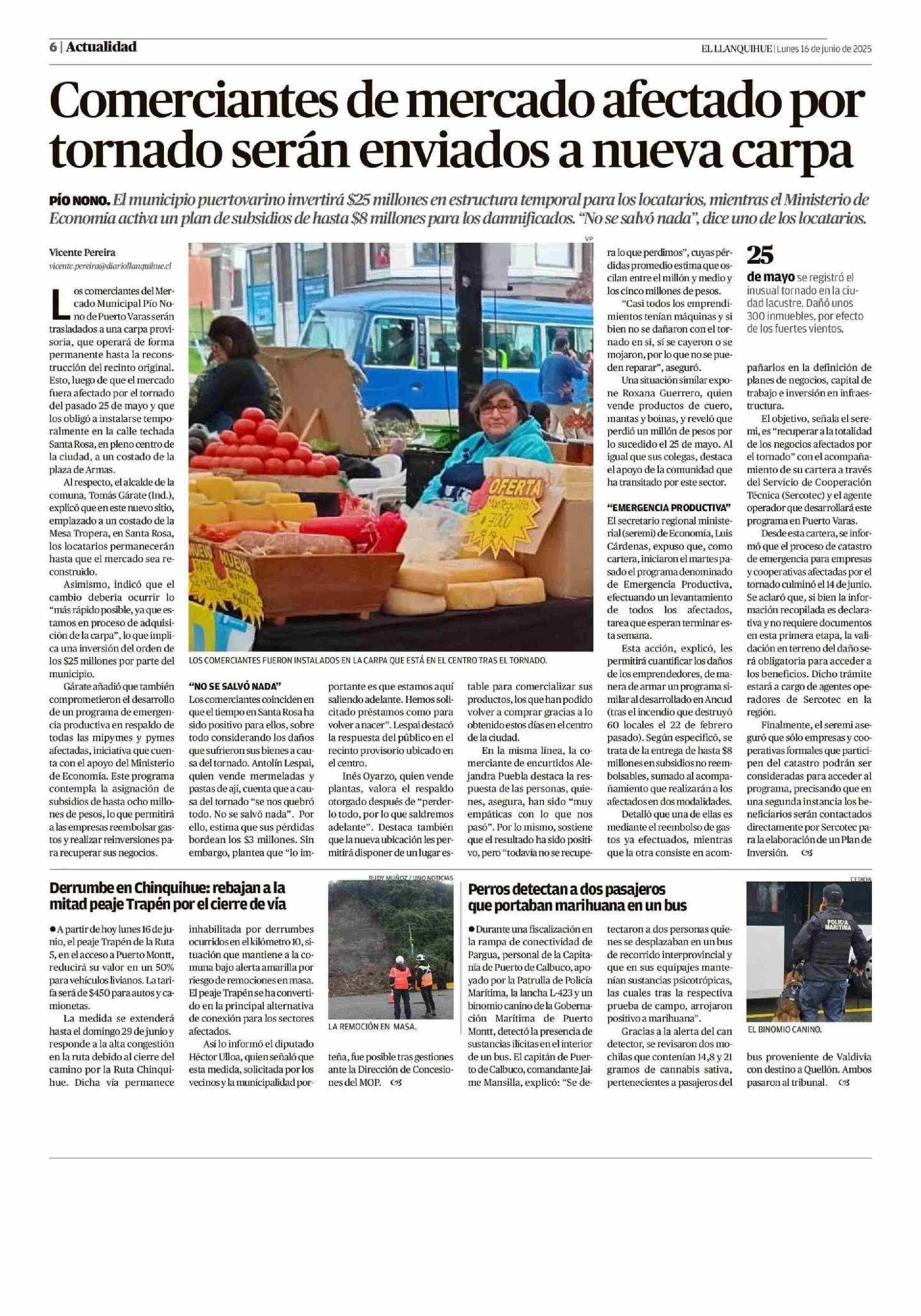 Comerciantes de mercado afectado por tornado serán enviados a nueva carpa 16-06-2025 El Llanquihue |