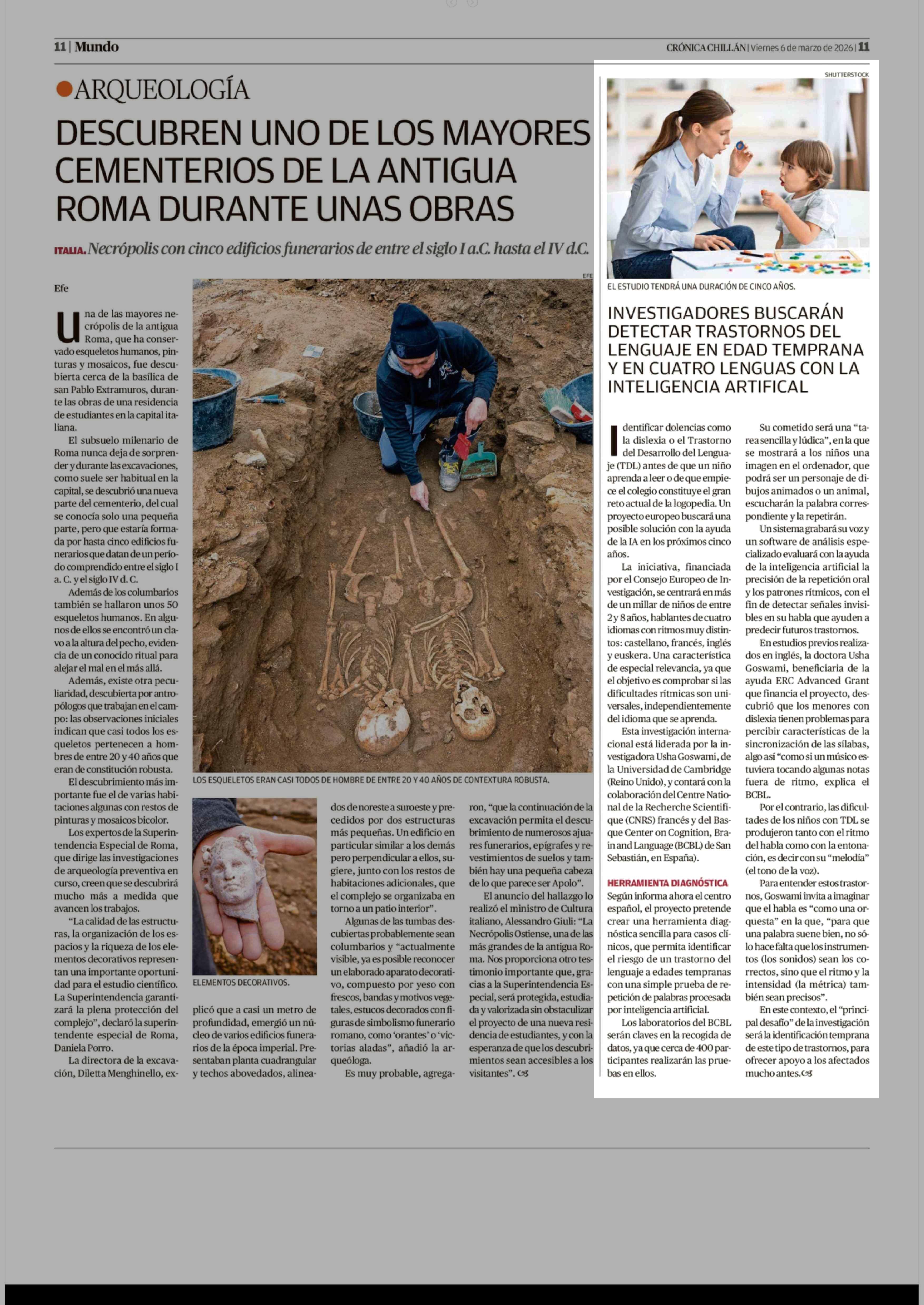 INVESTIGADORES BUSCARÁN DETECTAR TRASTORNOS DEL LENGUAJE EN EDAD TEMPRANA Y EN CUATRO LENGUAS CON LA INTELIGENCIA ARTIFICAL 06-03-2026 Crónica de Chillán |