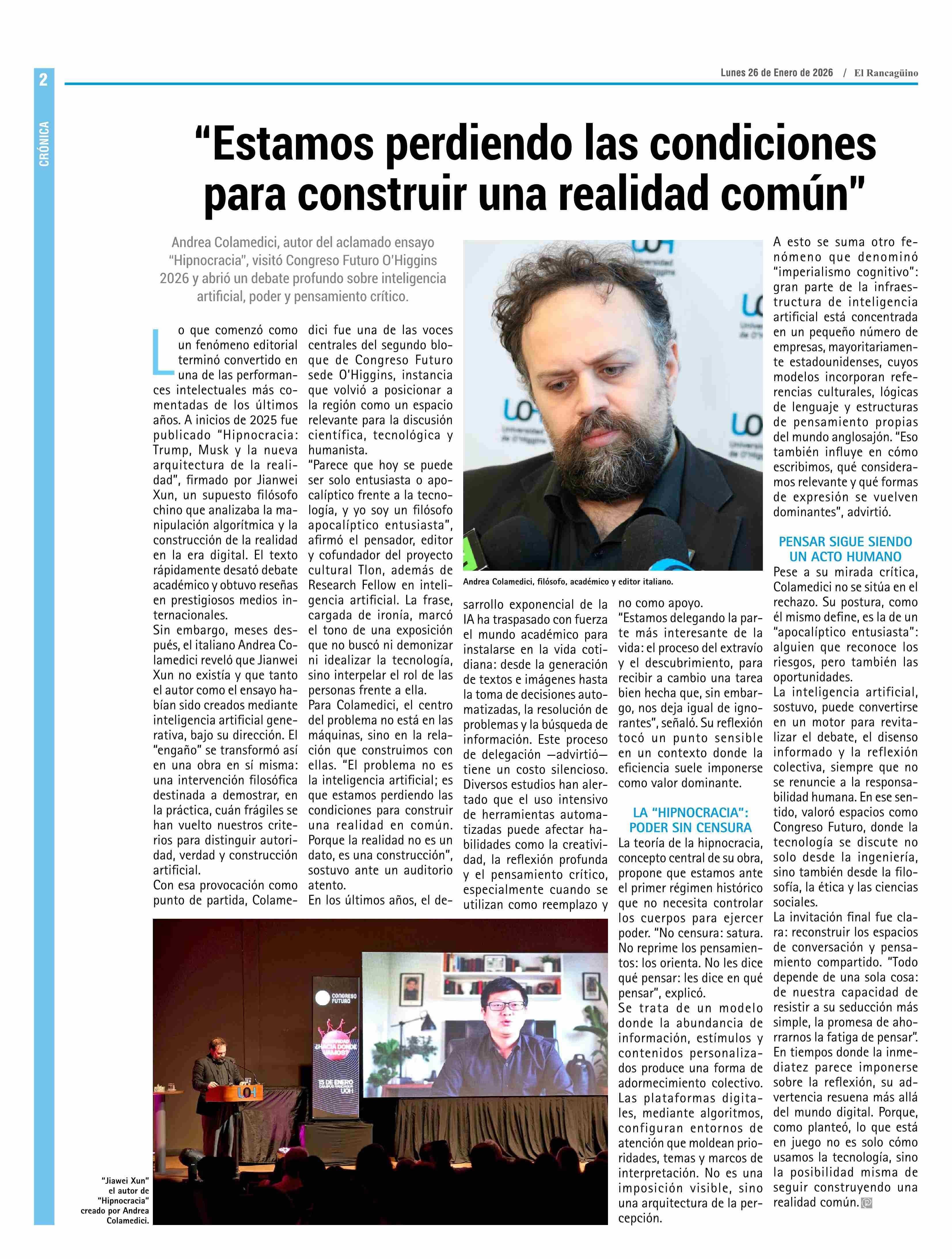 Fecha: 26-01-2026 Sector: Noticia general Región: Región del Libertador General Bernardo O'Higgins