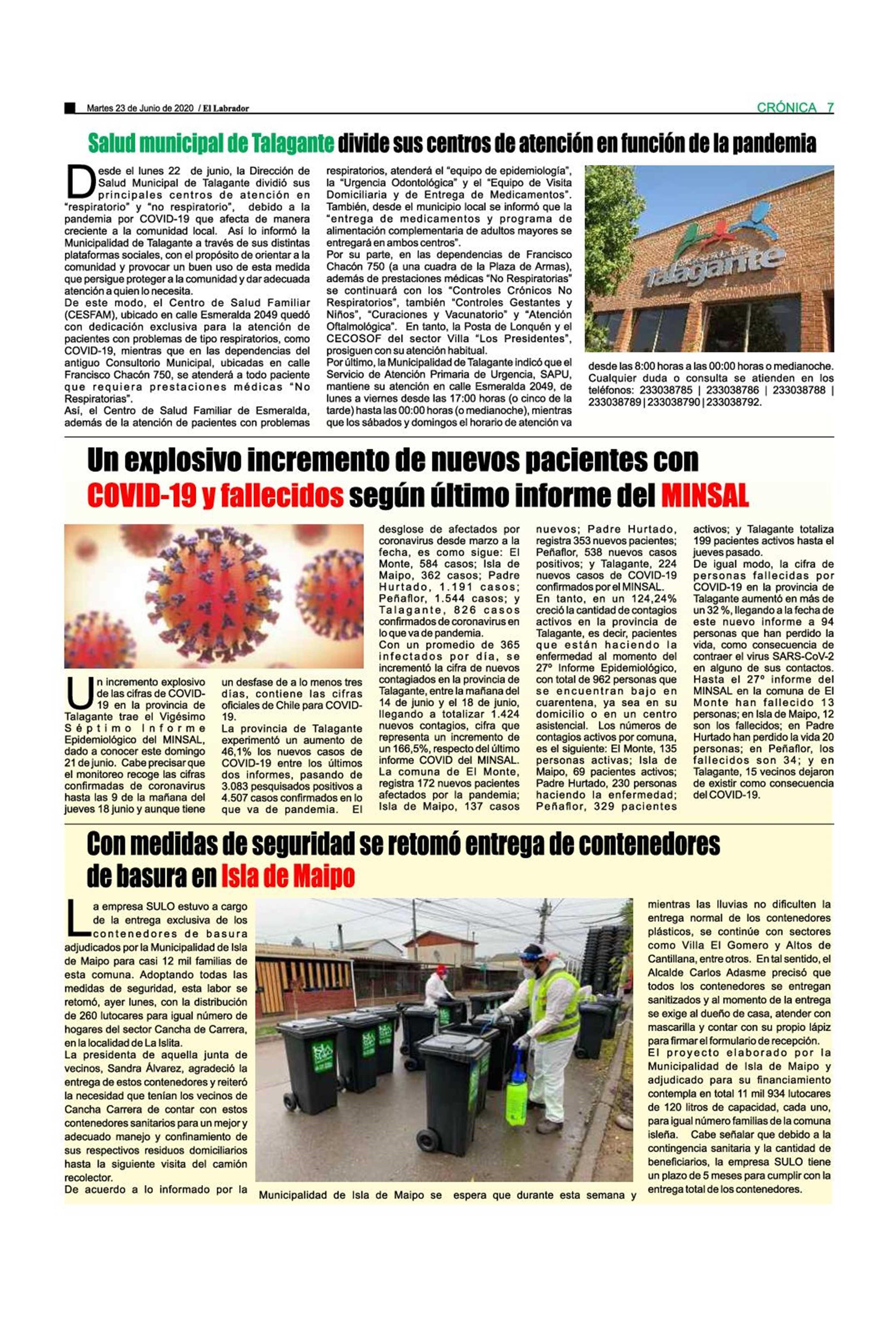 Salud municipal de Talagante divide sus centros de atención en función de la pandemia 23-06-2020 El Labrador |