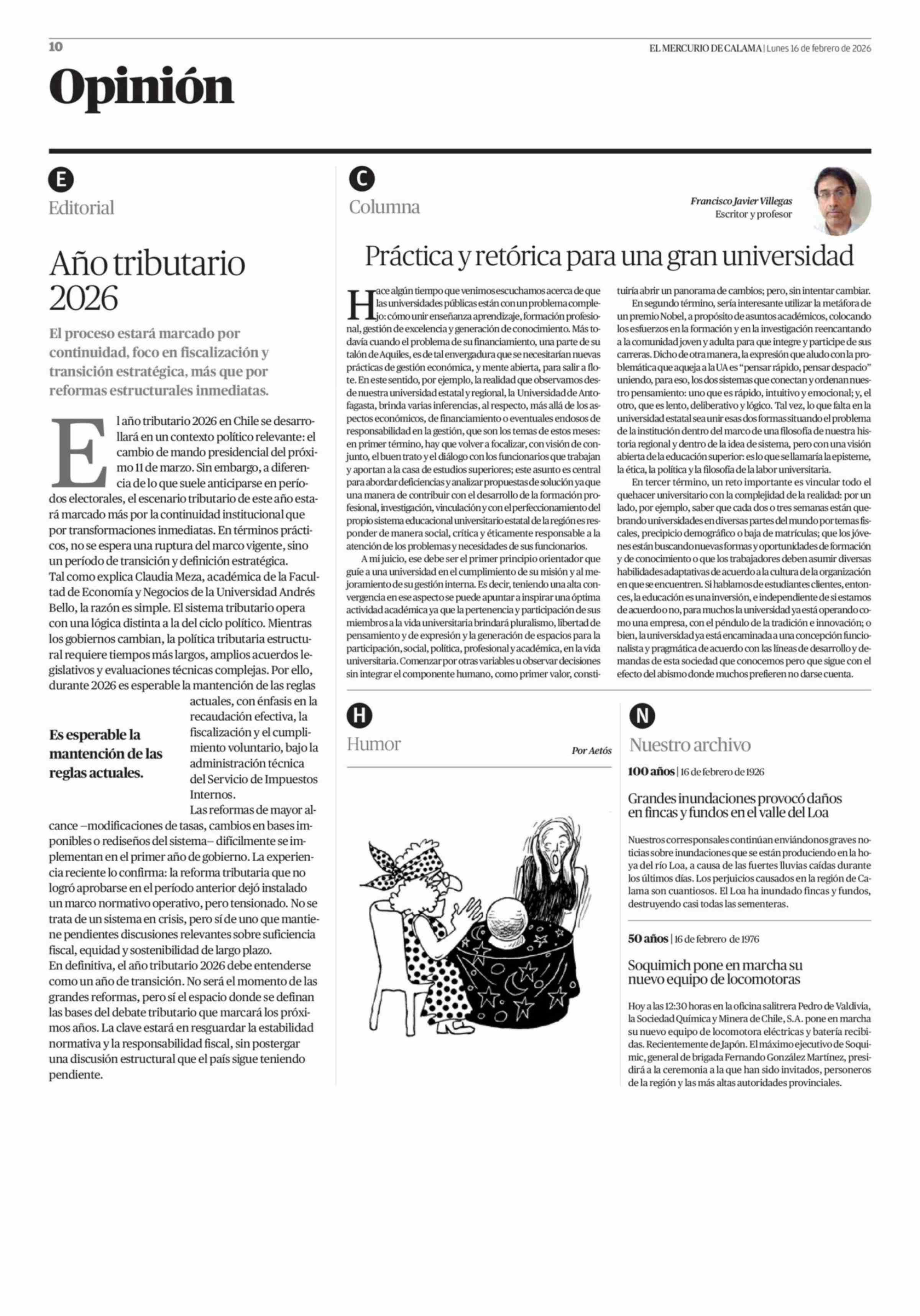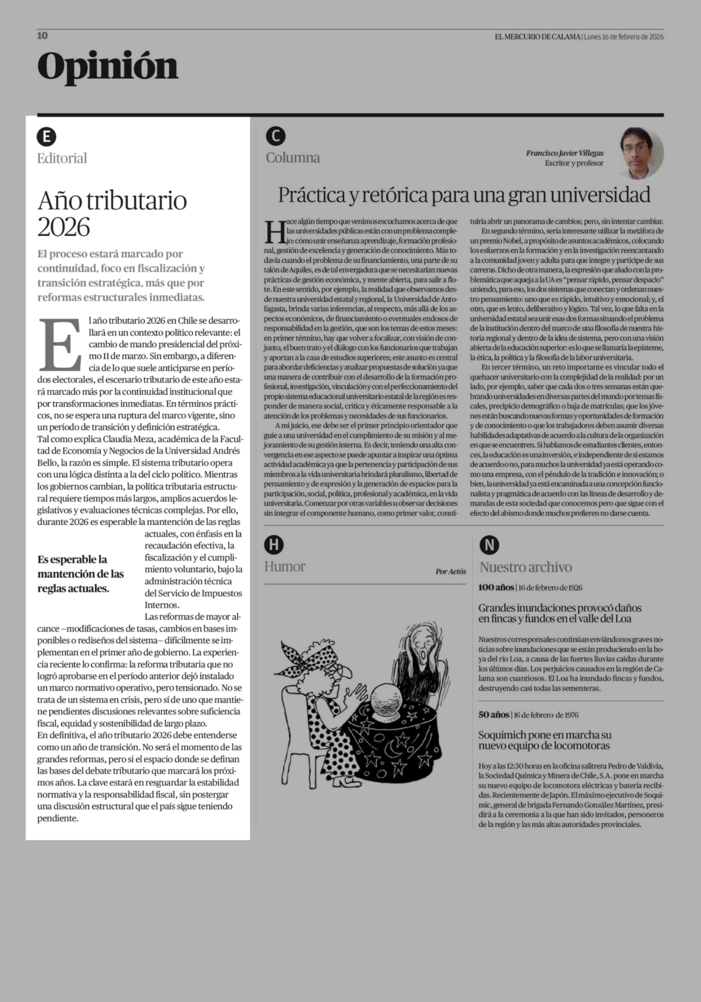 Editorial: Año tributario 2026 16-02-2026 El Mercurio de Calama |