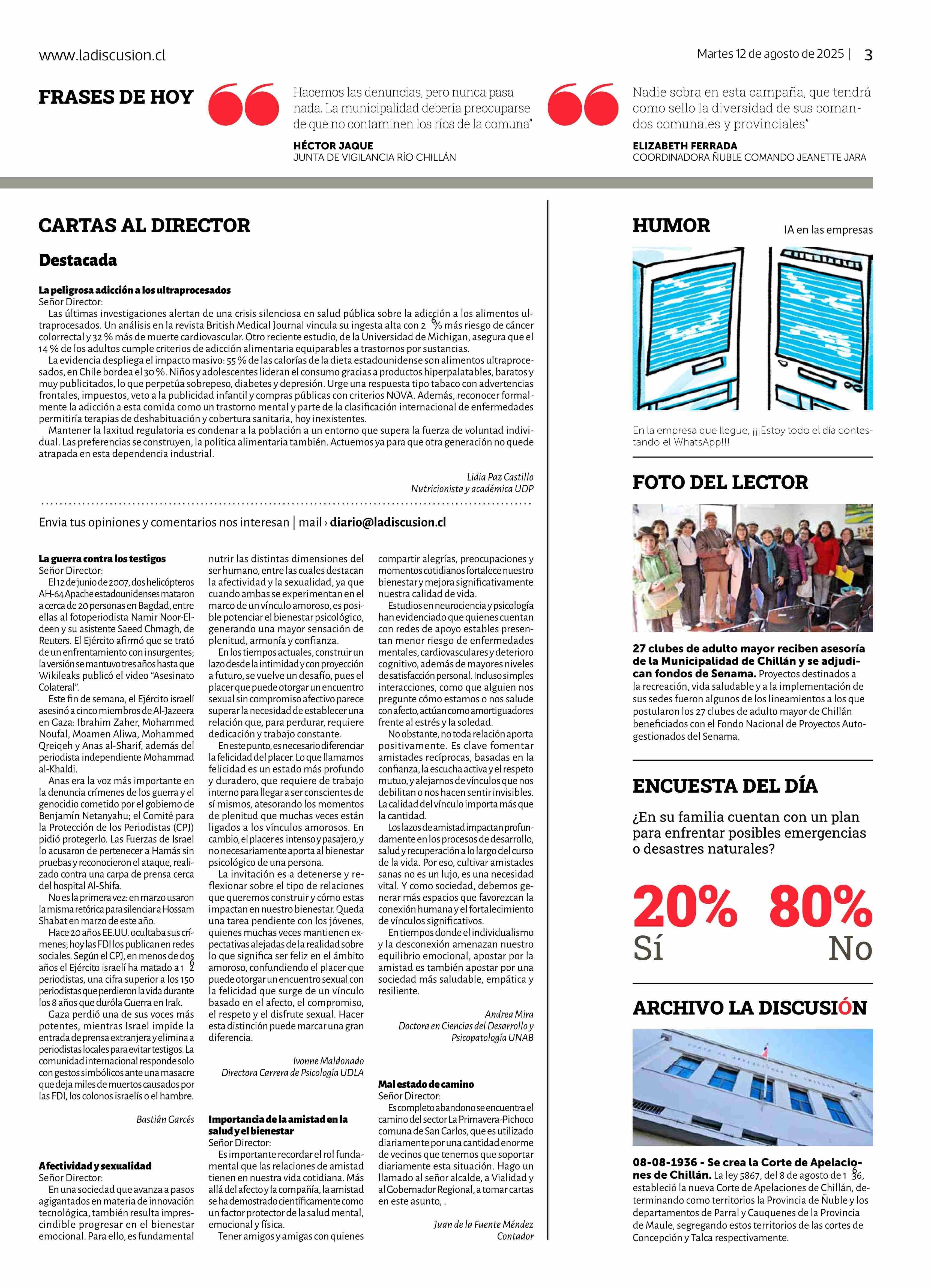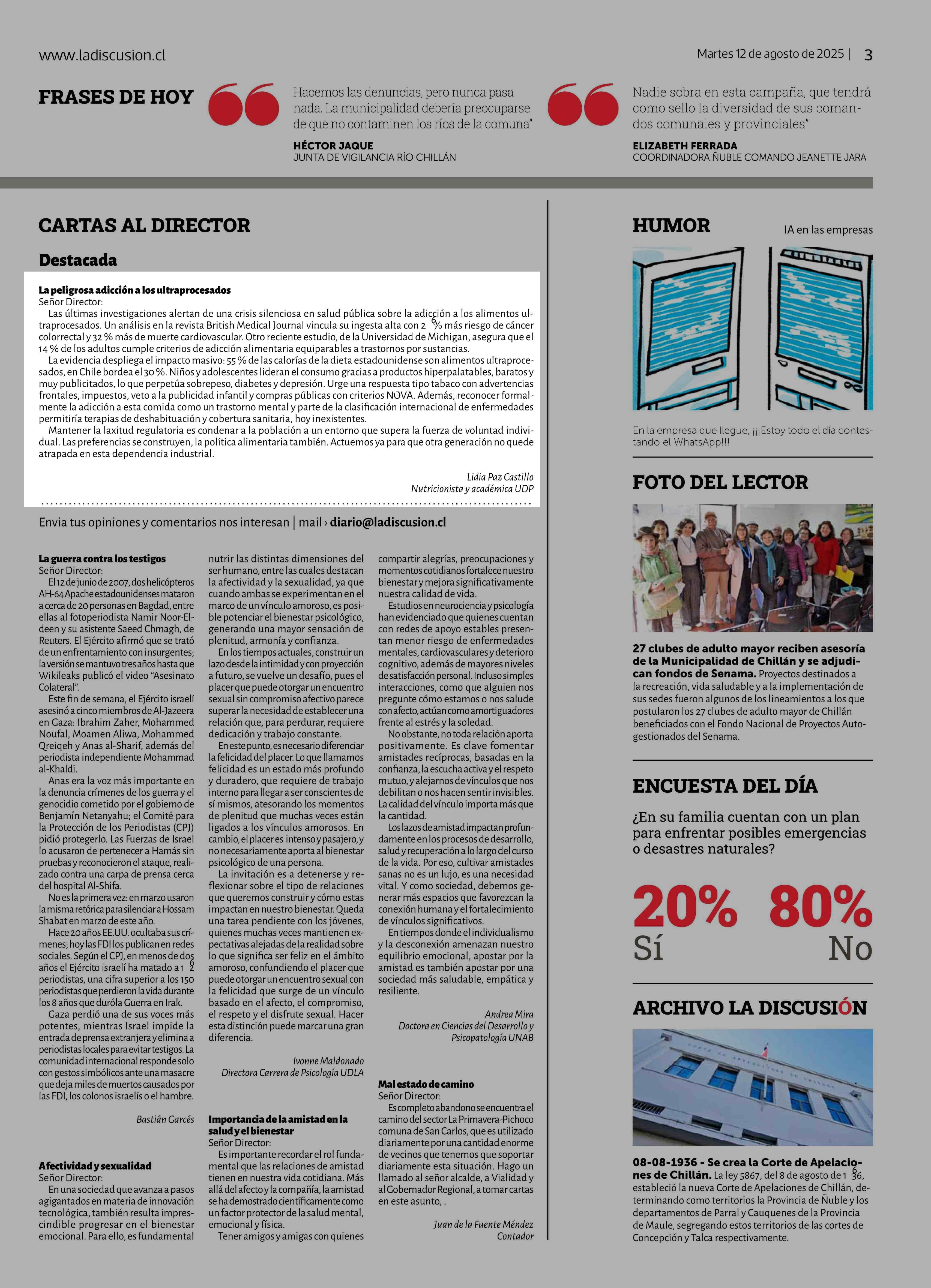 CARTAS: La peligrosa adicción a los ultrapeocesados 12-08-2025 La Discusión |