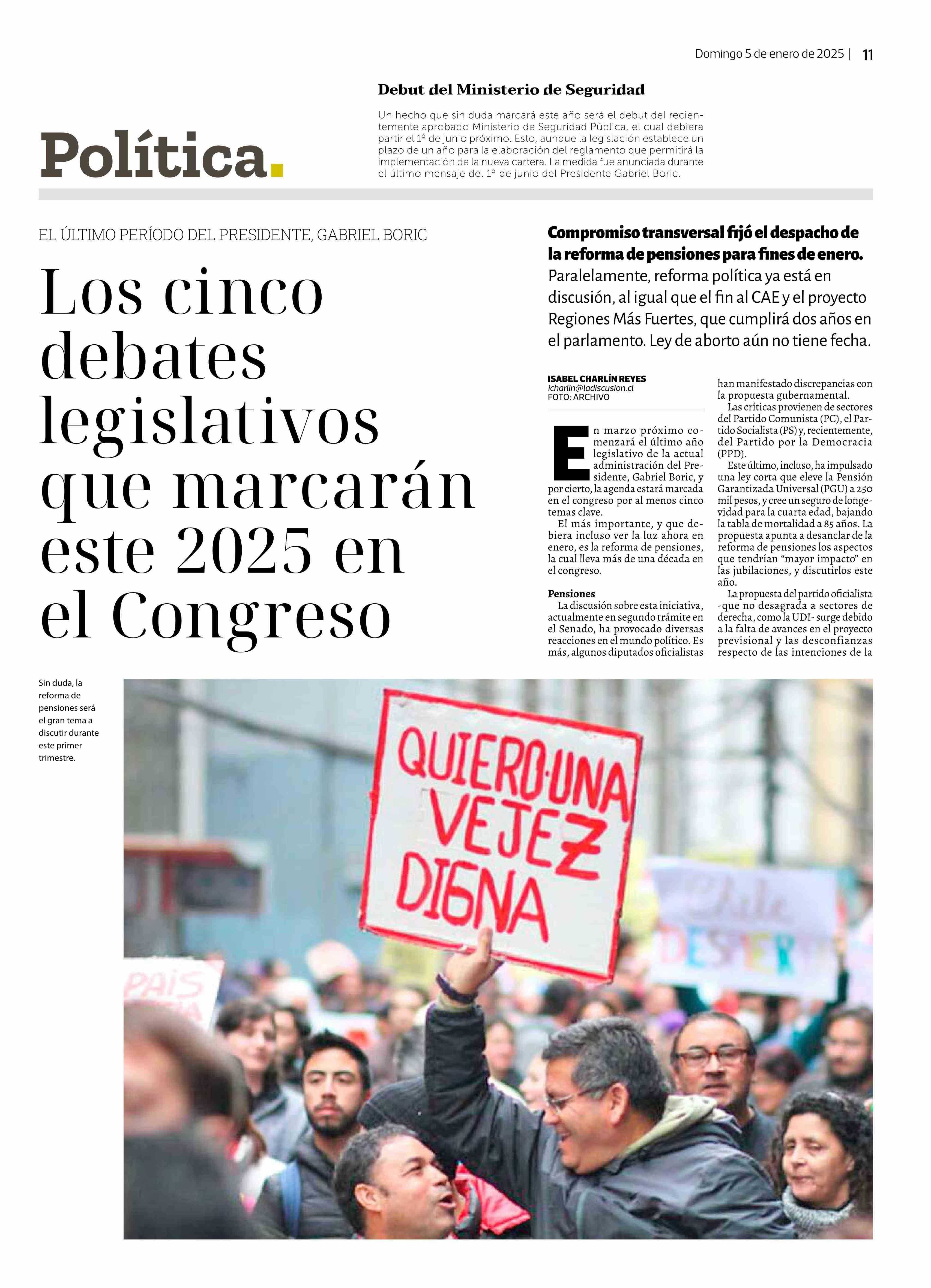 Los cinco debates legislativos que marcarán este 2023 en el Congreso 05-01-2025 La Discusión |