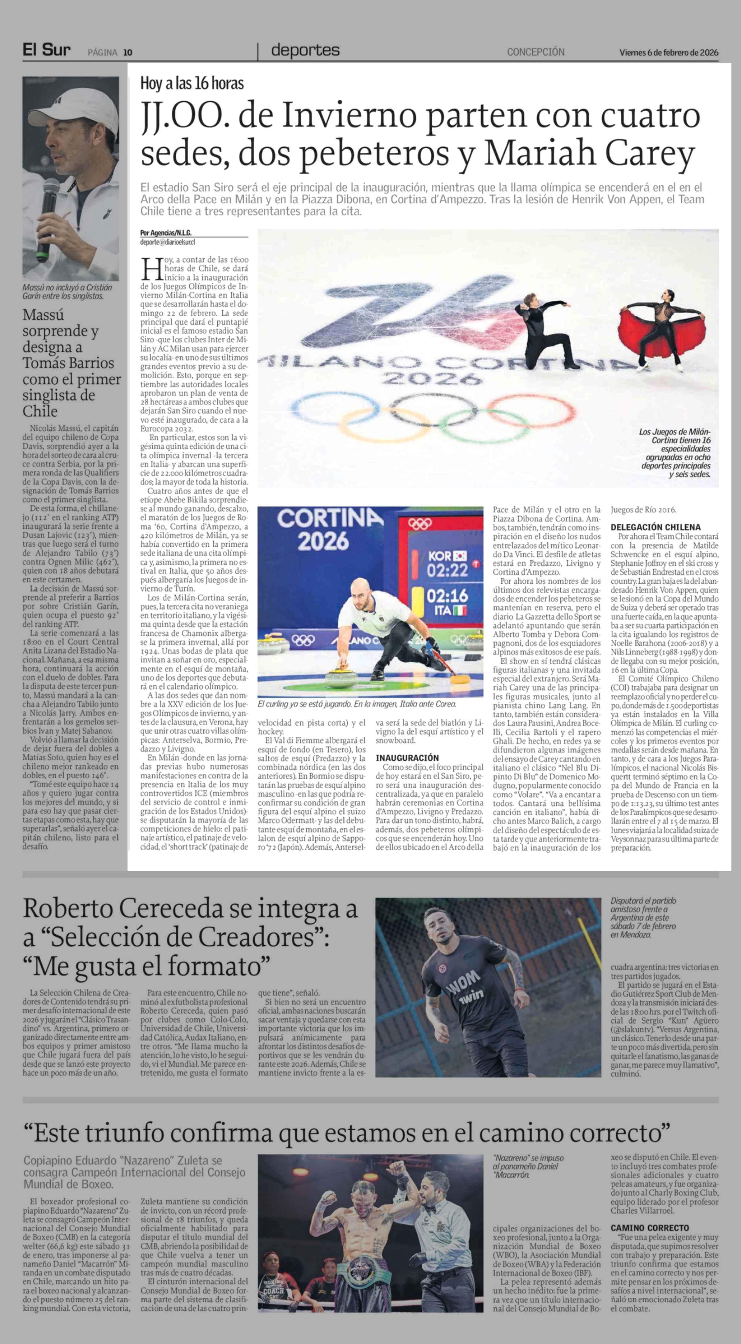 Juego Olímpicos de Invierno parten con cuatro sedes, dos pebeteros y Mariah Carey 06-02-2026 El Sur |