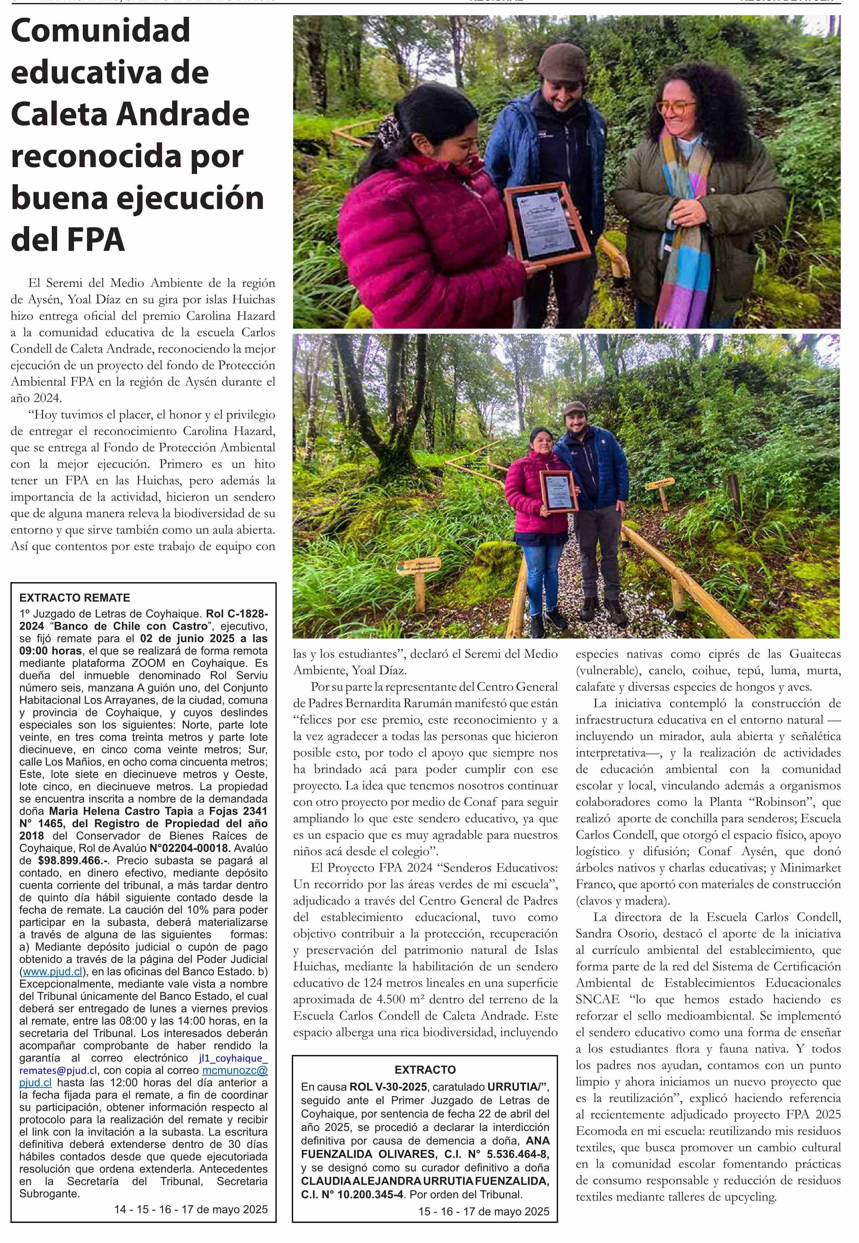 | Fecha: | 17-05-2025 | Sector: | Noticia general | Región: | Región Aysén del General Carlos Ibáñez del Campo |