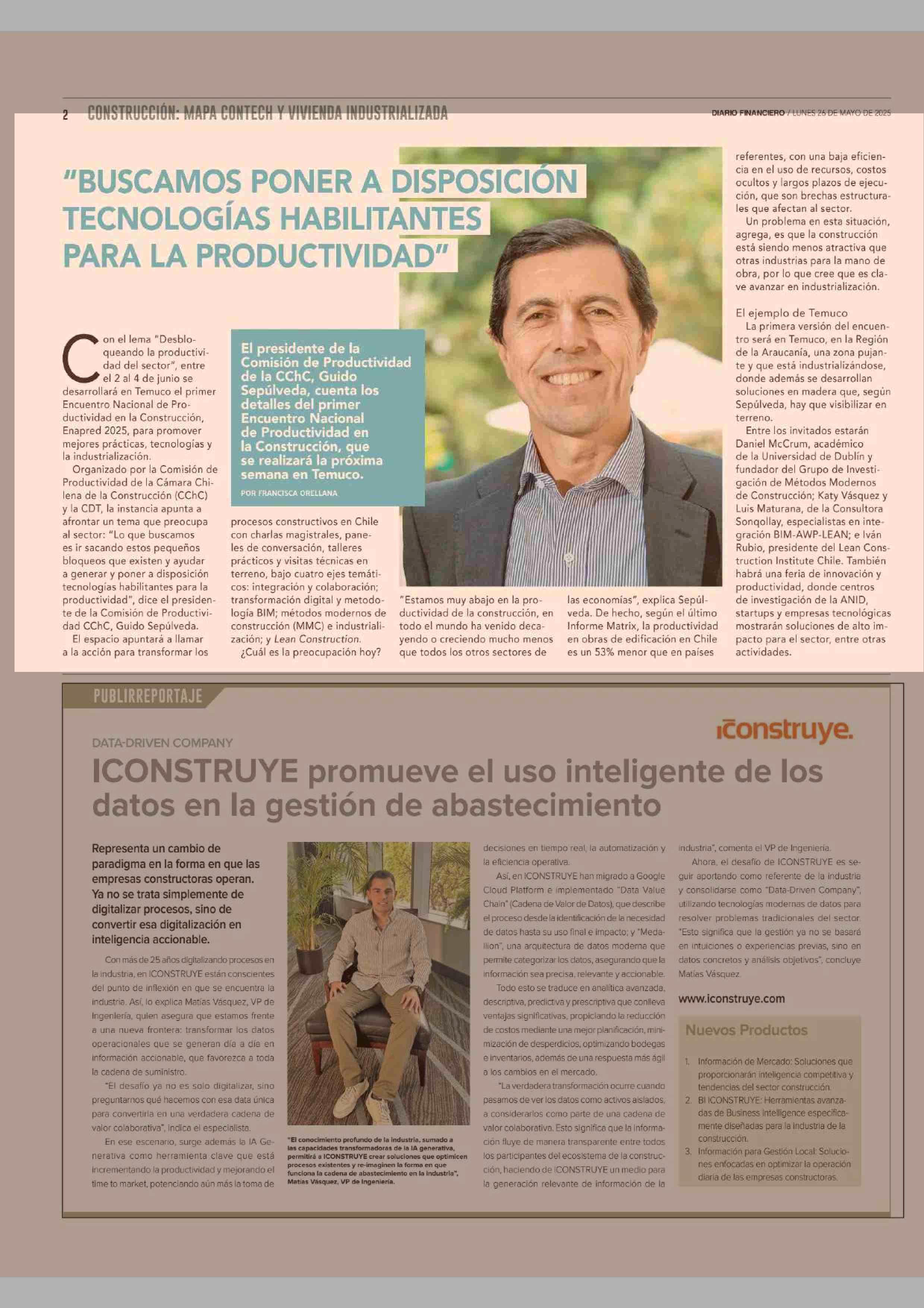 “BUSCAMOS PONER A L TECNOLOGÍAS HABILITL PARA LA PRODUCTIVIDAD” 26-05-2025 Diario Financiero |