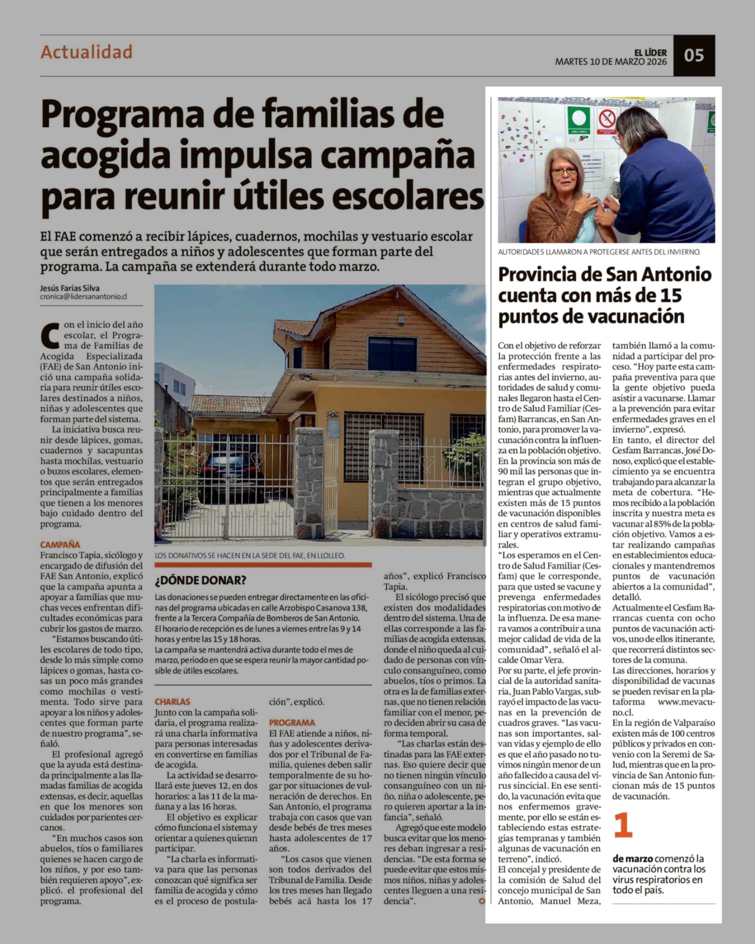 Provincia de San Antonio cuenta con más de 15 puntos de vacunación 10-03-2026 El Líder |