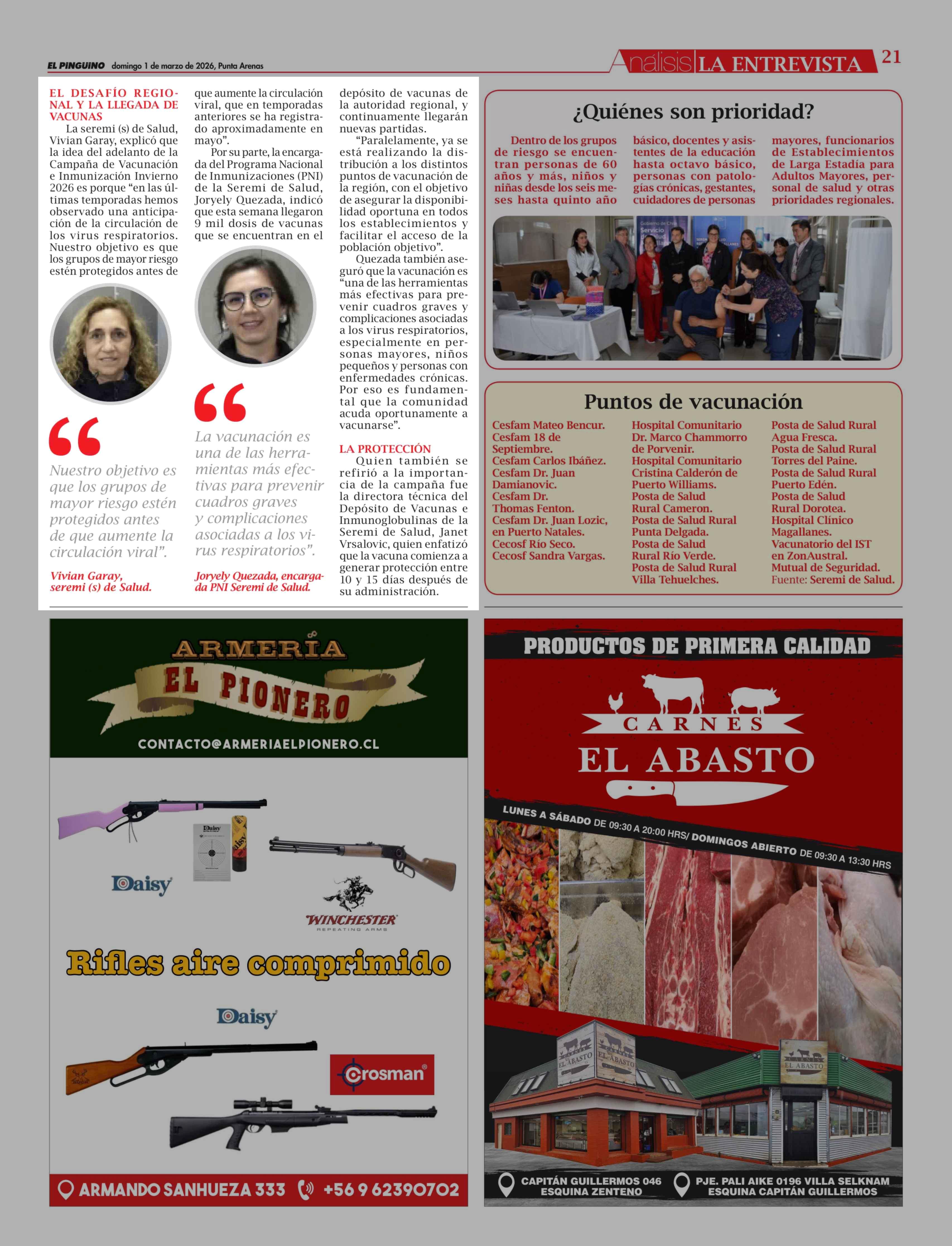 Título: Inicia Campaña de Vacunación en Magallanes: el desafío de inocular a 90 mil personas en dos meses