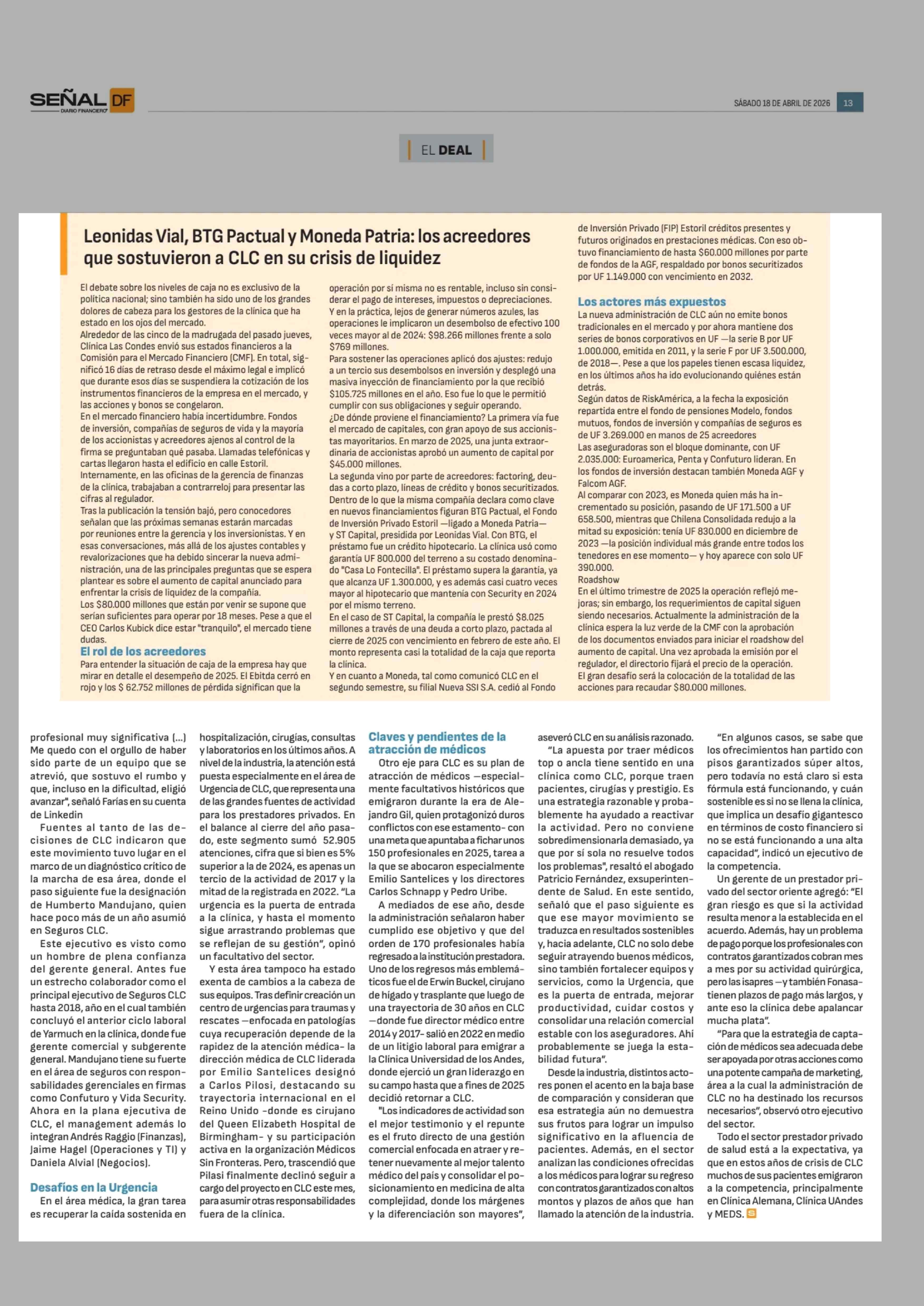 Fuente: Diario Financiero (Diario Financiero - Señal DF Sabado) Página(s): 12-13