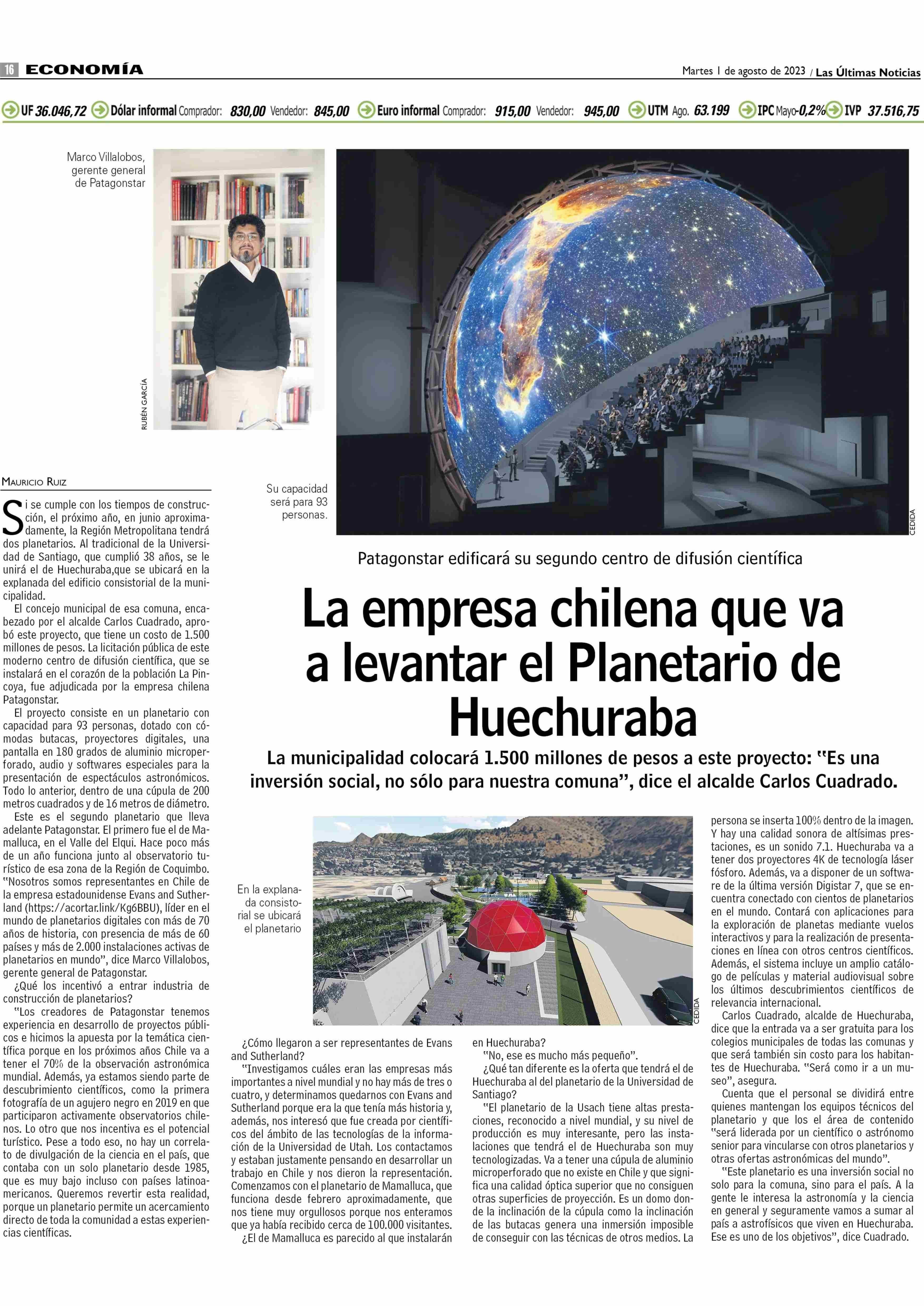 La empresa chilena que va a levantar el Planetario de Huechuraba 01-08-2023 Las Últimas Noticias |