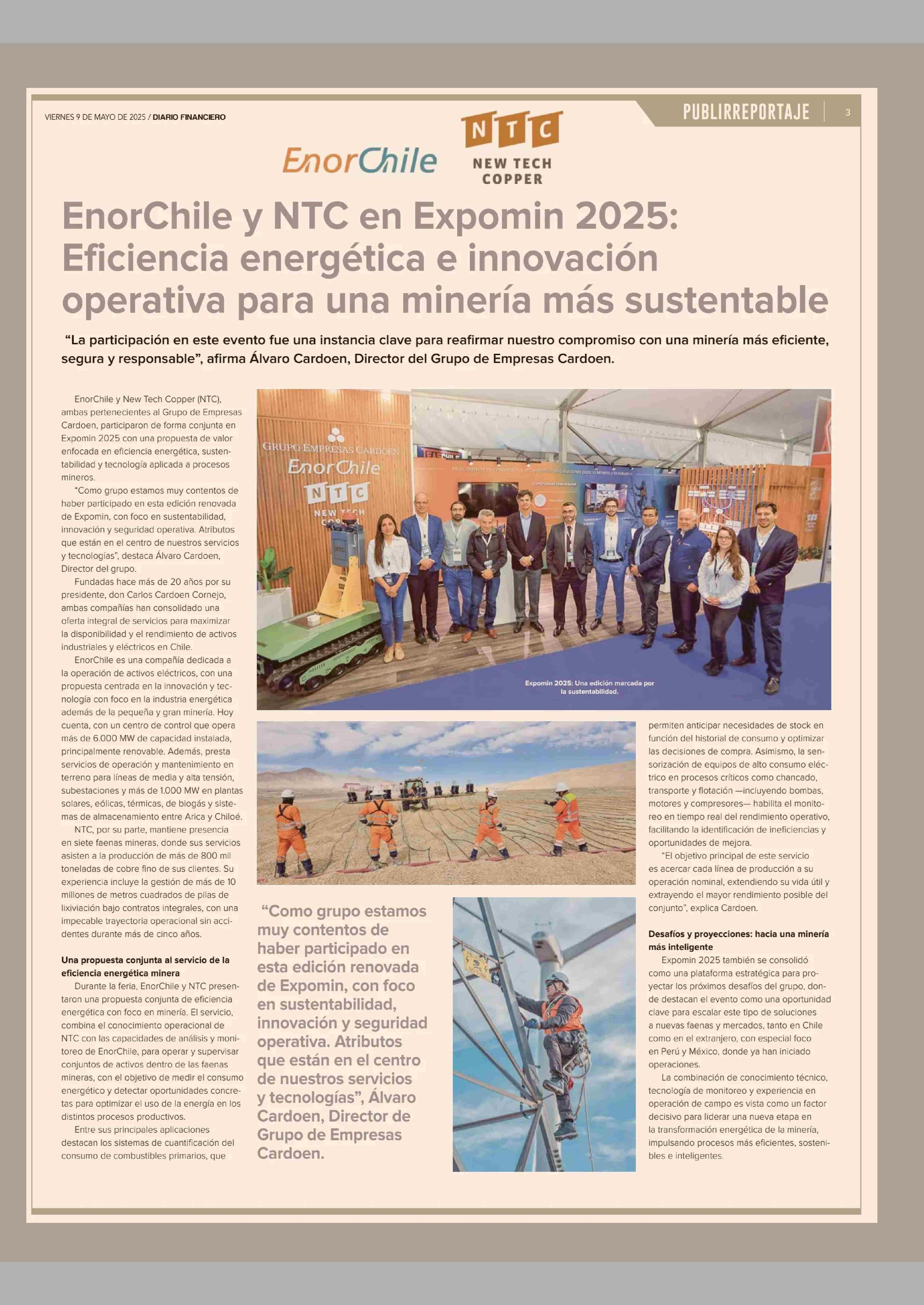 EnorChile y NTC en Expomin 2025: Eficiencia energética e innovación operativa para una minería más sustentable 09-05-2025 Diario Financiero |