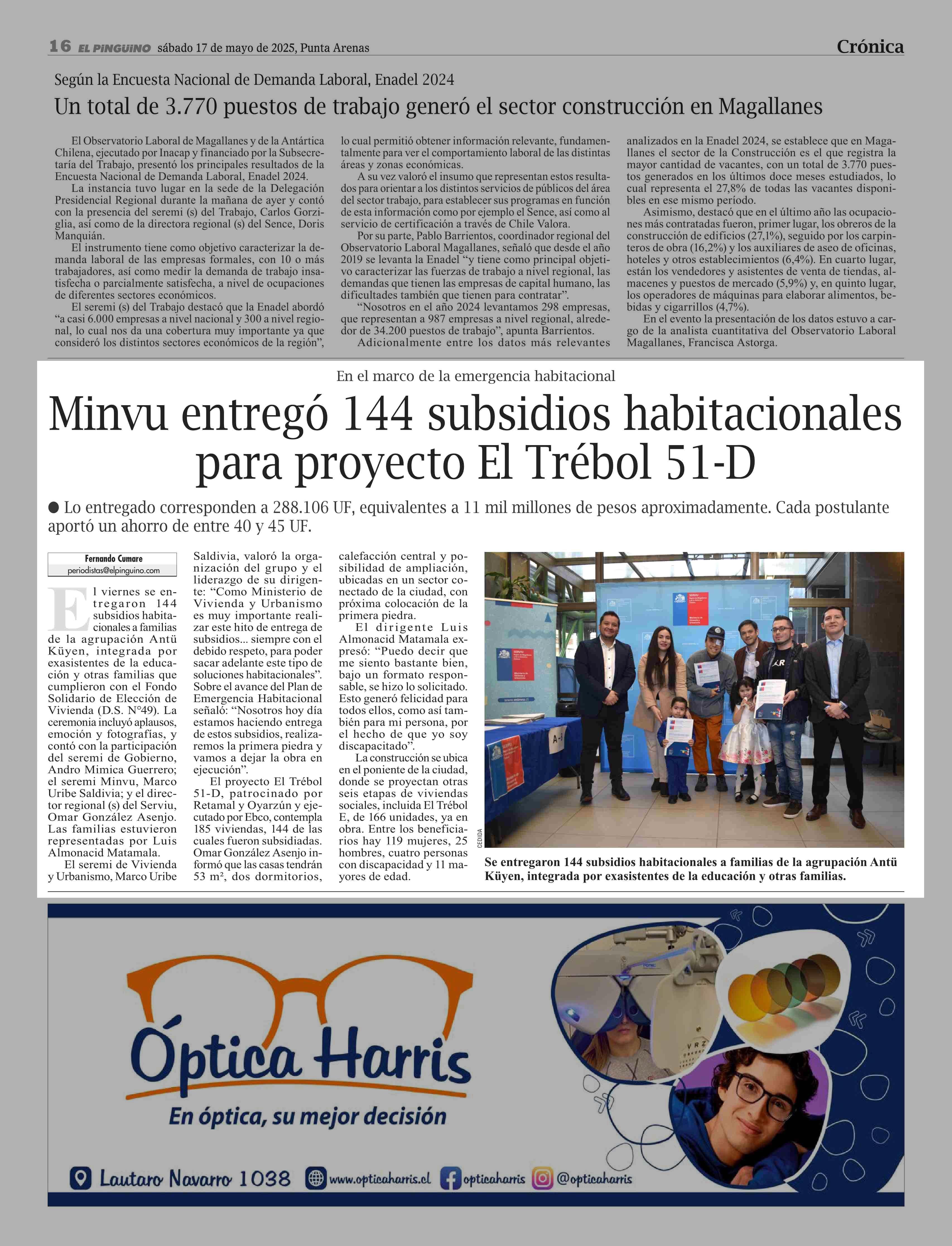 Minvu entregó 144 subsidios habitacionales para proyecto El Trébol 51-D 17-05-2025 El Pingüino |